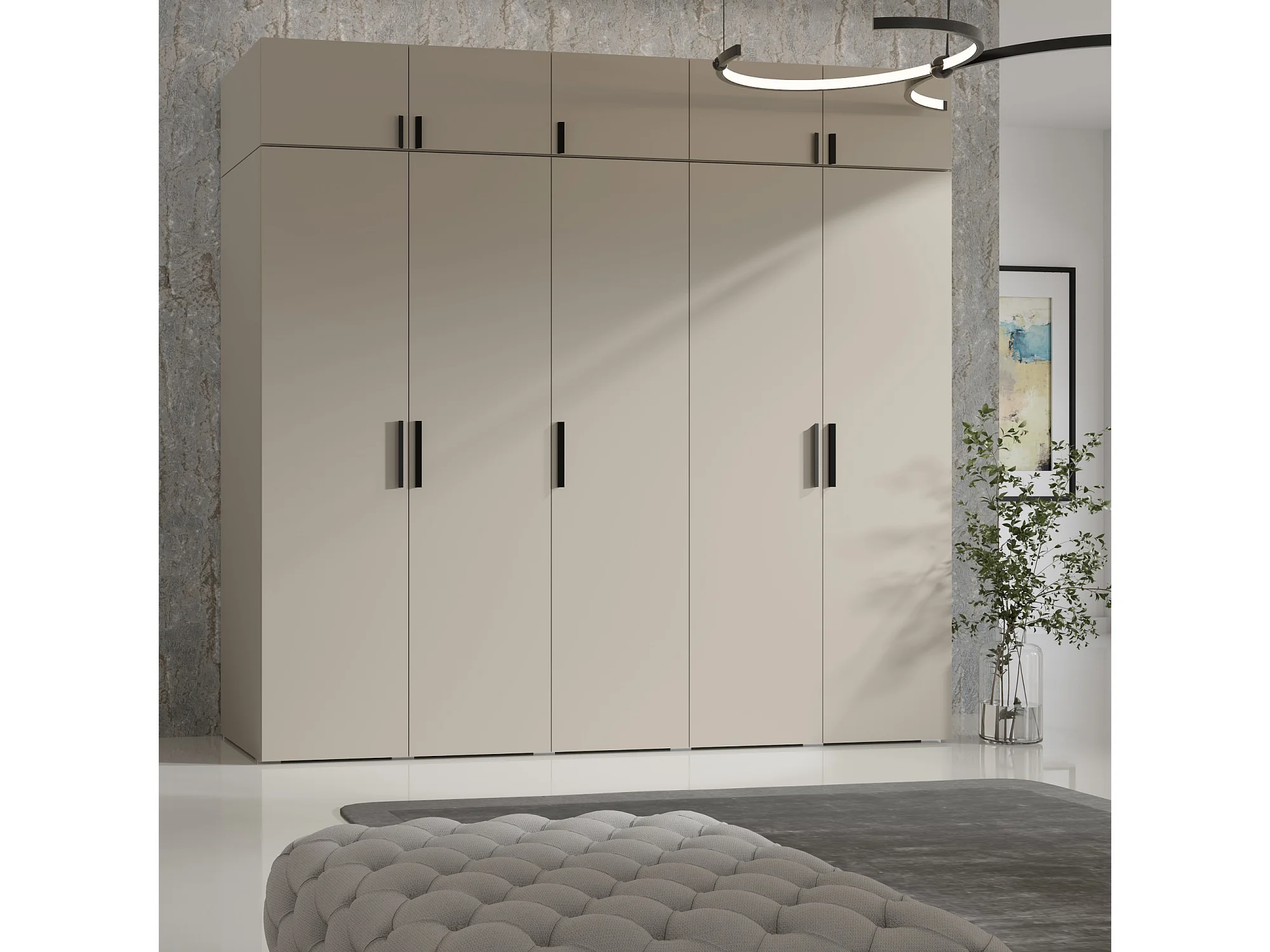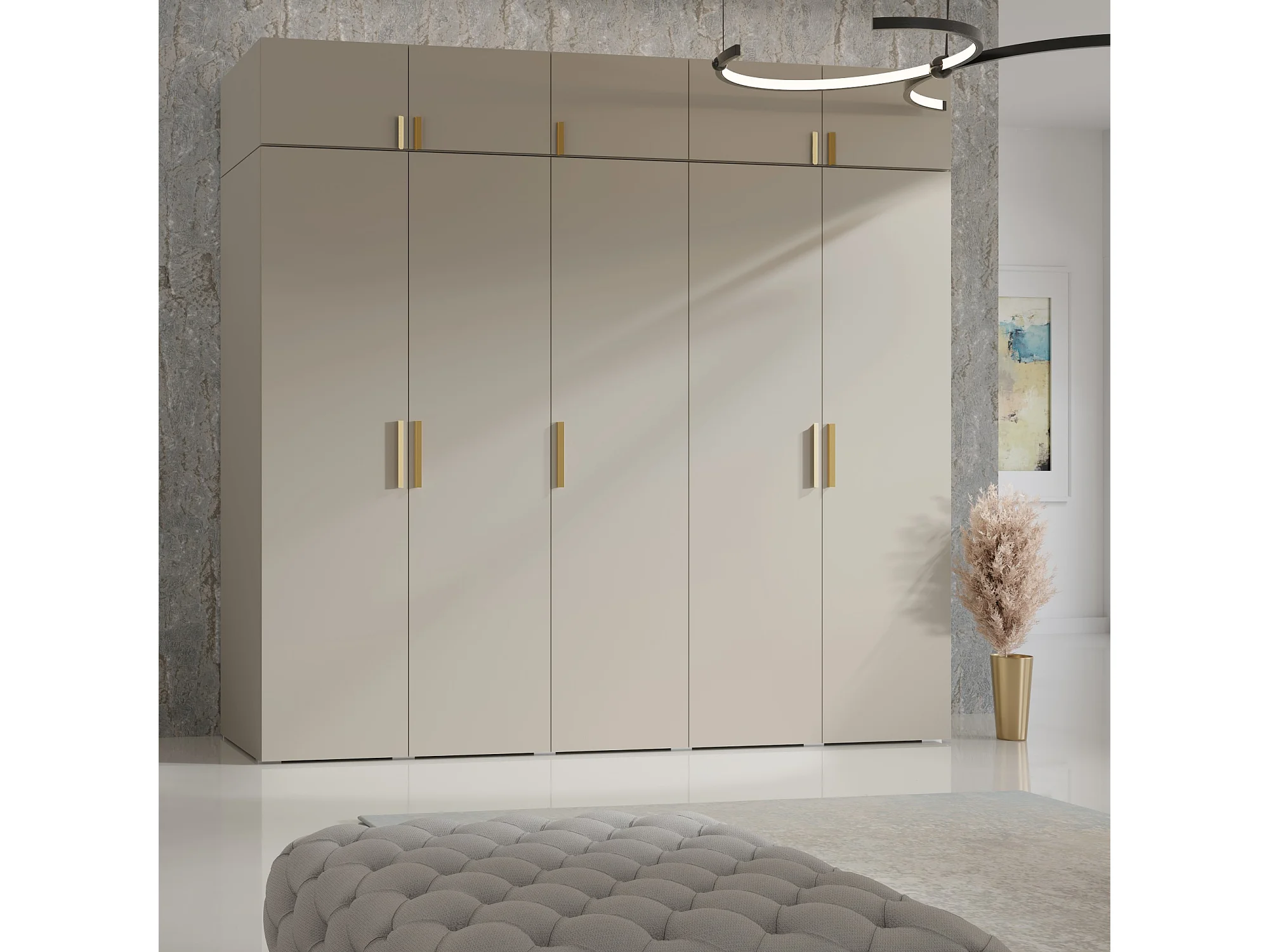 Drehtürenschrank mit Aufsatz Napoli 5D 250 Kaschmir (schwarzer oder goldener Griff)