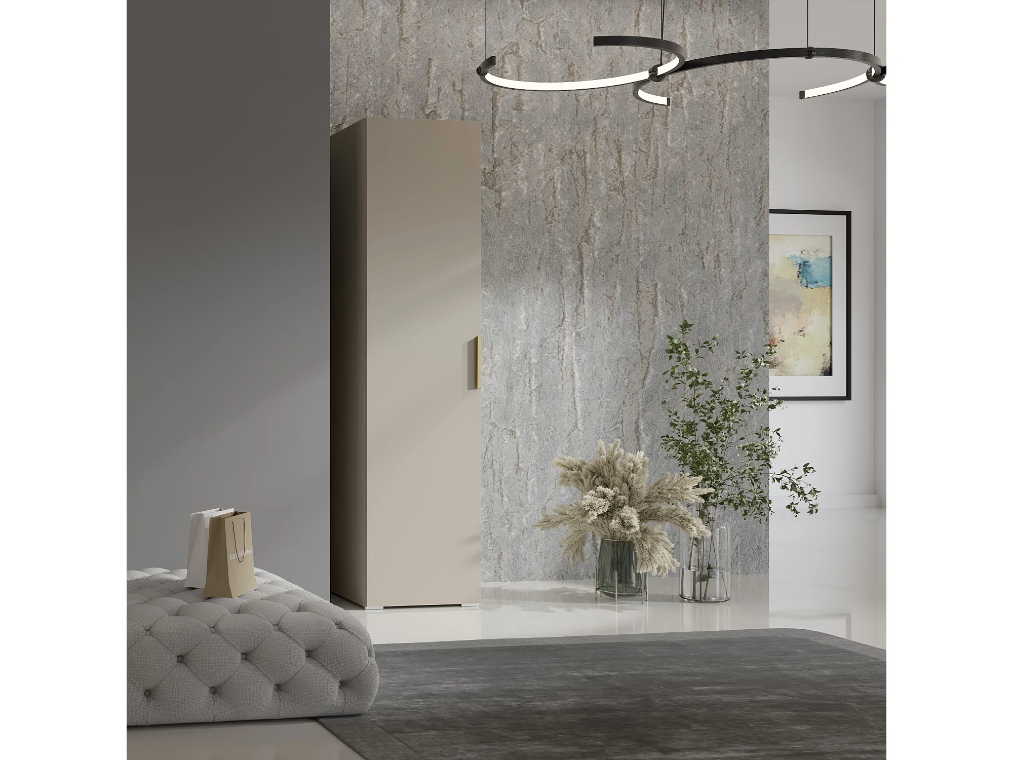 Drehtürenschrank mit Einlegeböden Napoli 1D 50 Kaschmir (schwarzer oder goldener Griff)