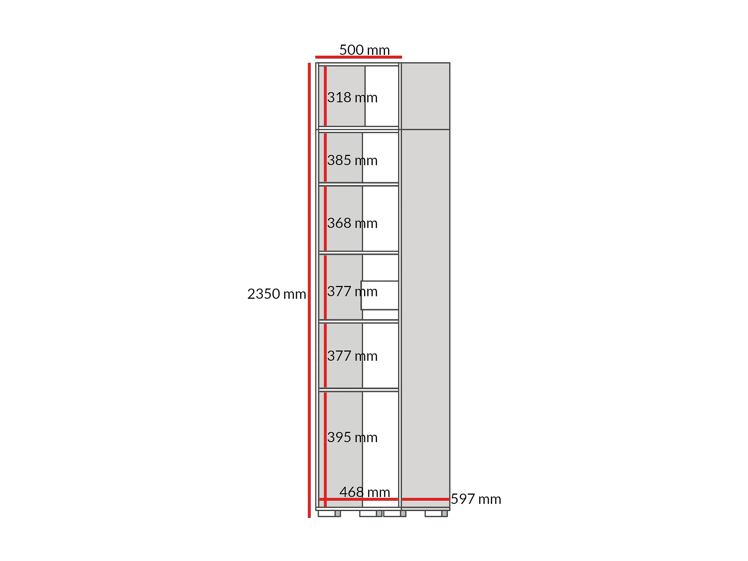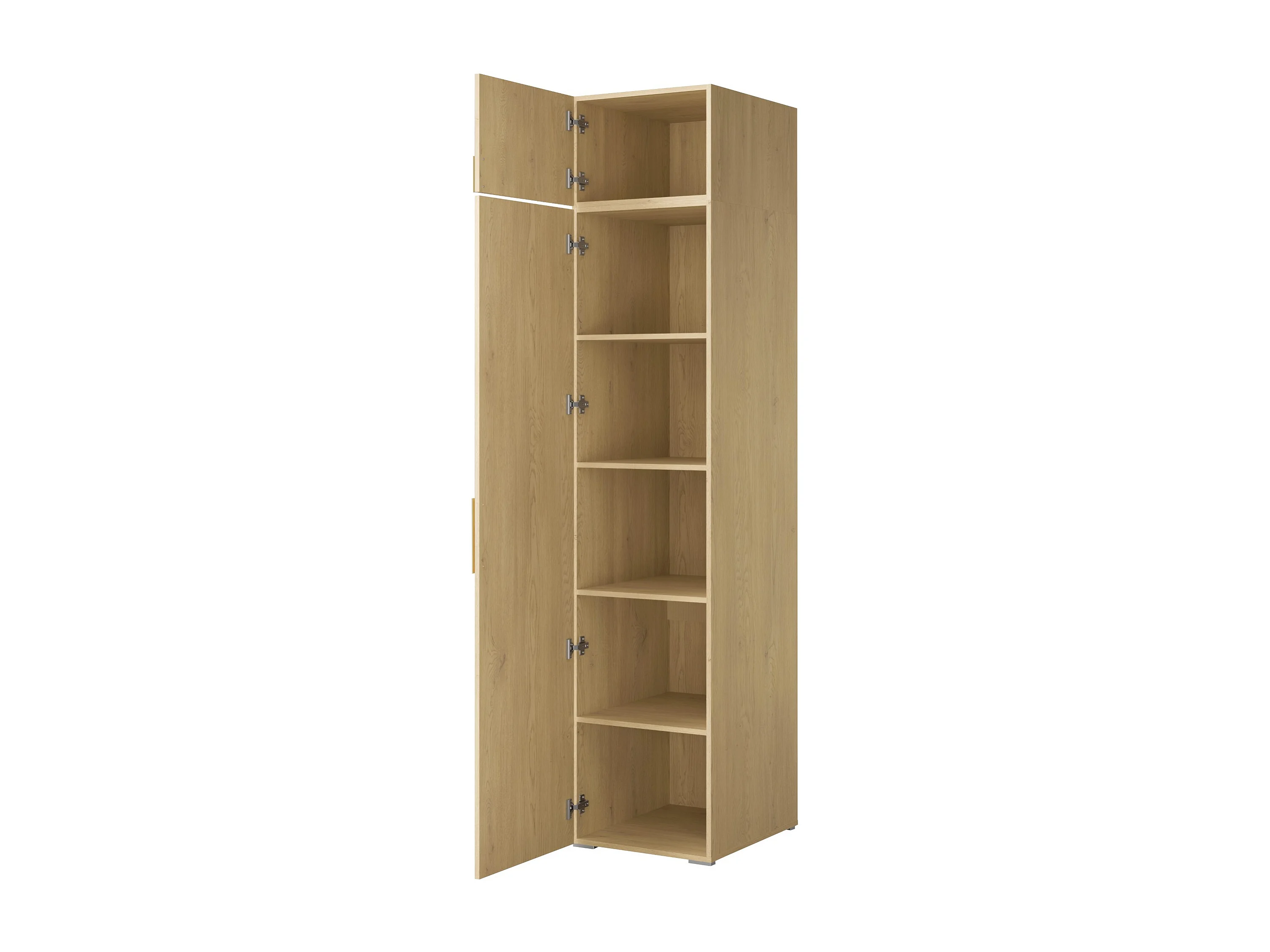 Drehtürenschrank mit Einlegeböden und Aufsatz Napoli 1D 50 Eiche Cremona (schwarzer oder goldener Griff)