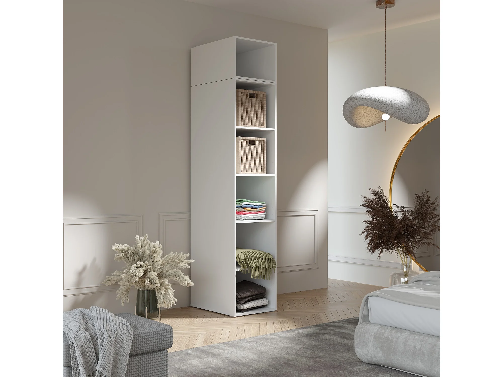 Drehtürenschrank mit Einlegeböden und Aufsatz Napoli 1D 50 Schwarz (schwarzer oder goldener Griff)