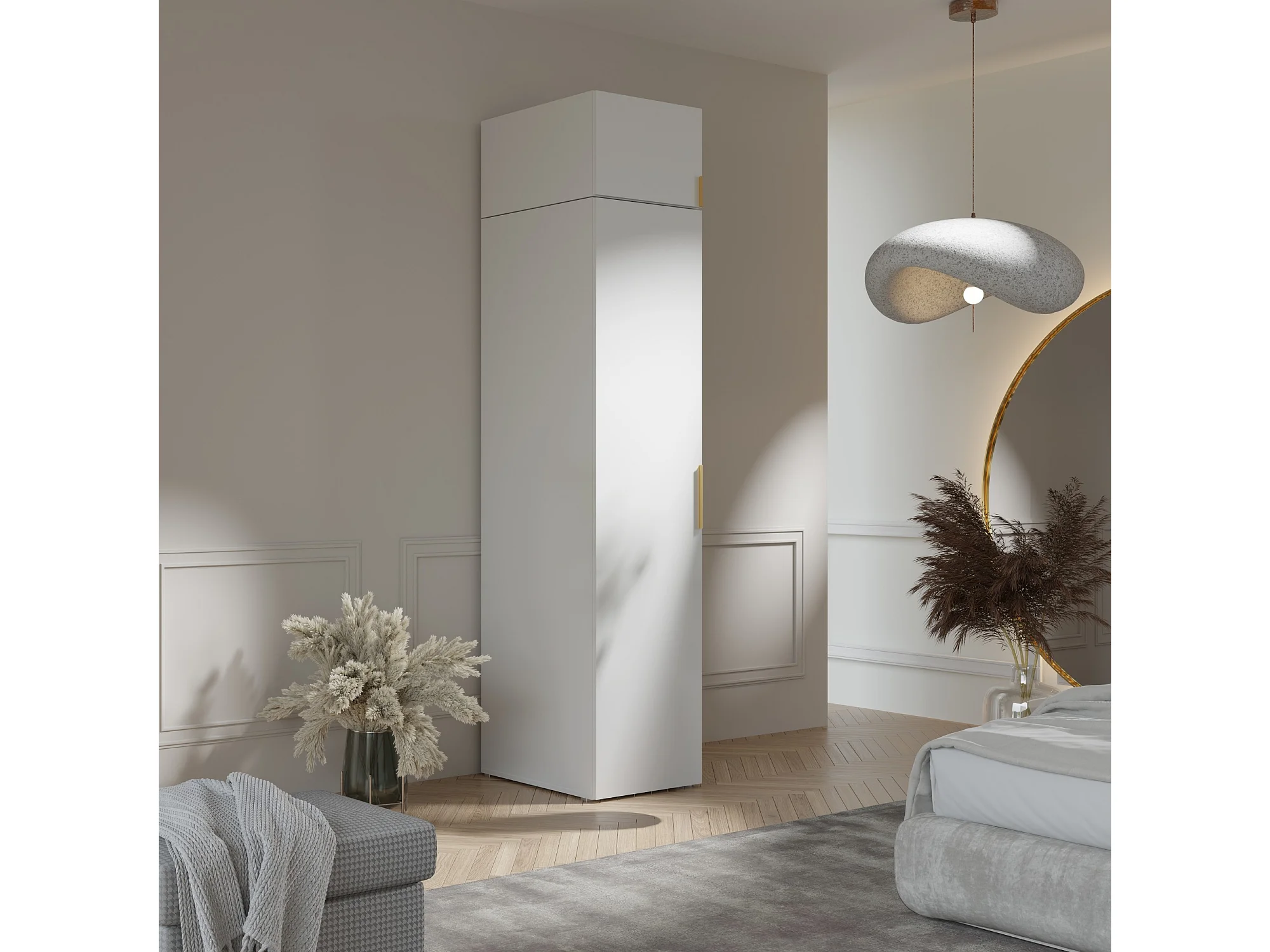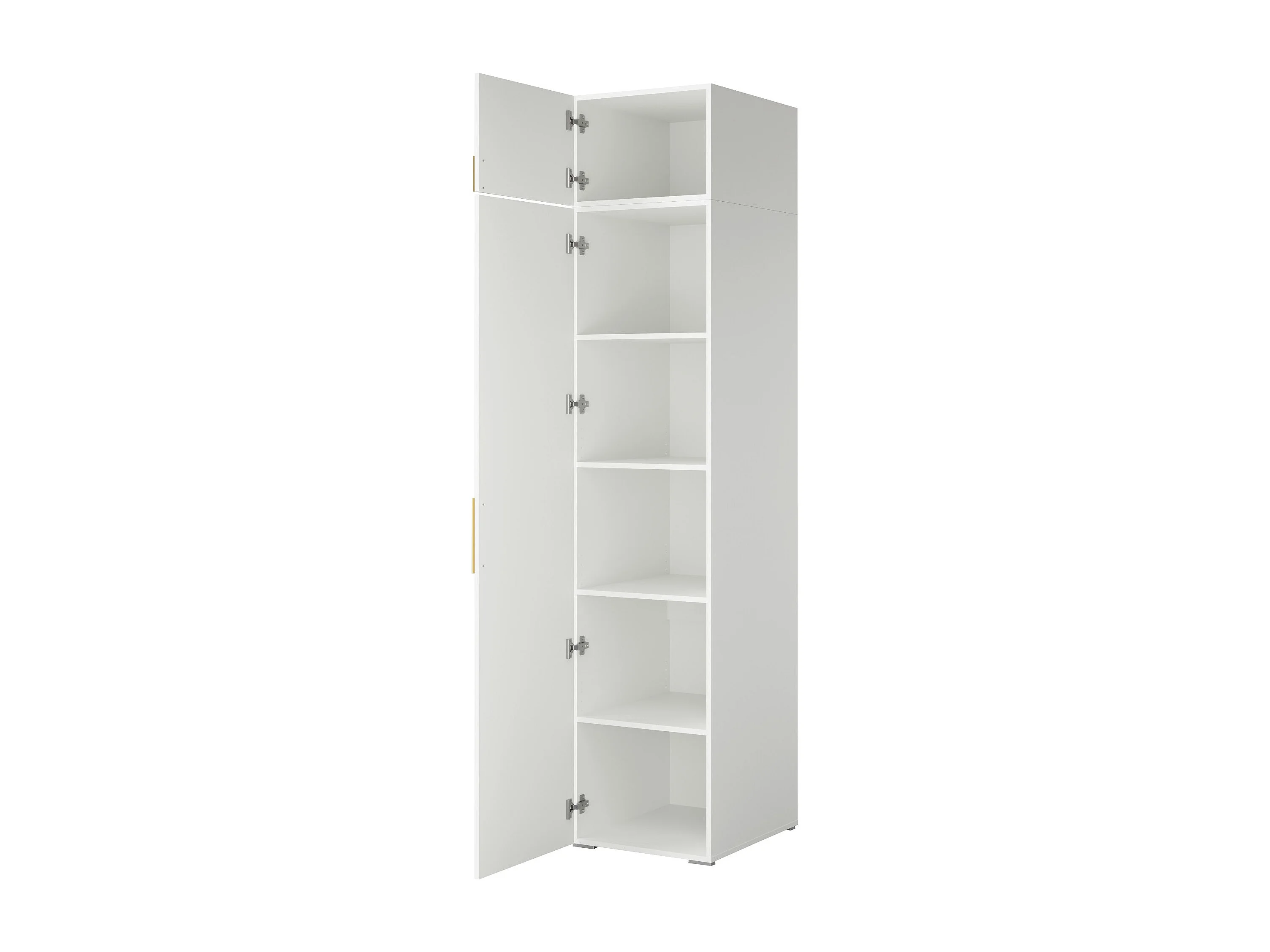 Drehtürenschrank mit Einlegeböden und Aufsatz Napoli 1D 50 Weiß (schwarzer oder goldener Griff)