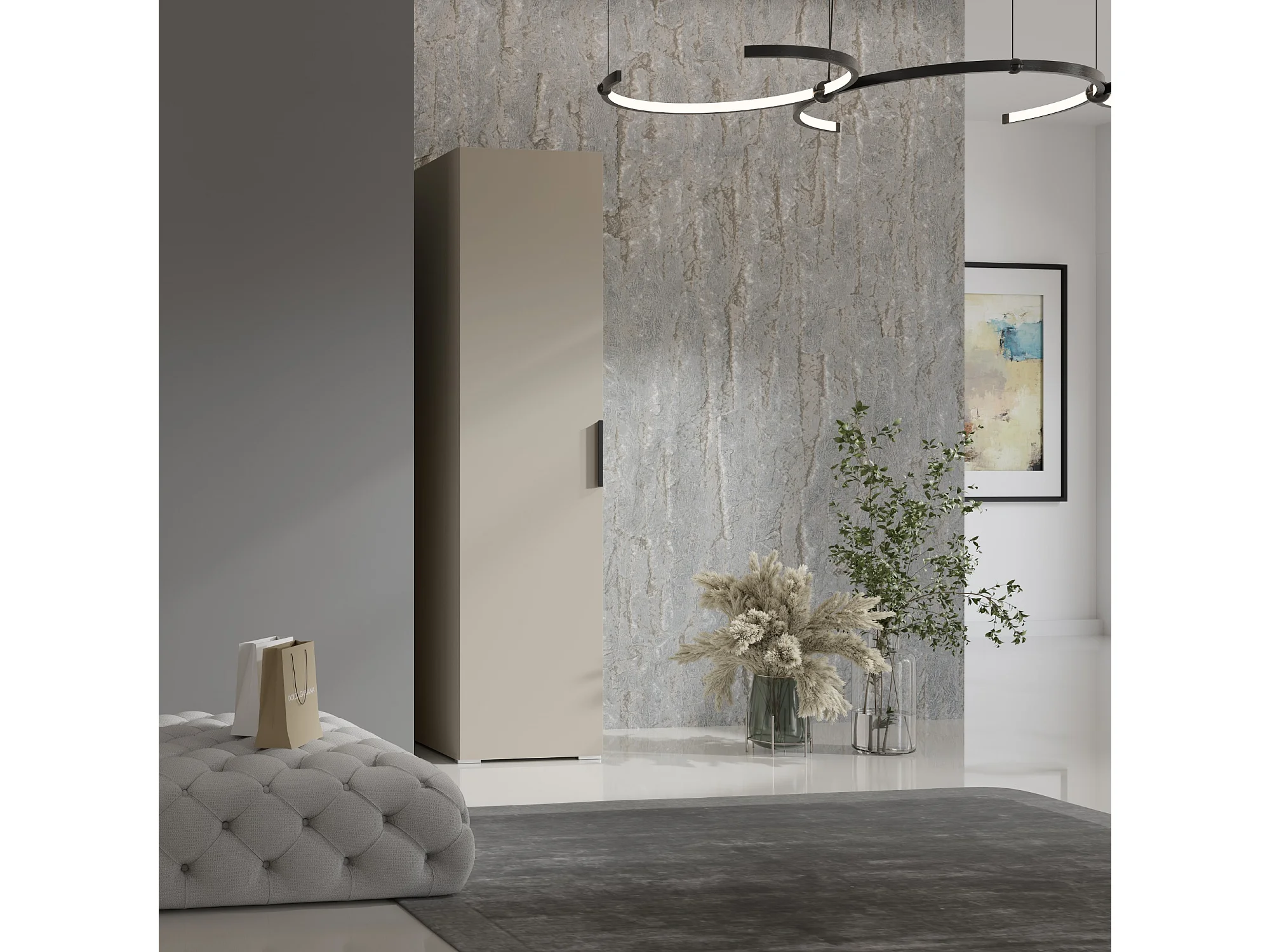 Drehtürenschrank Napoli 1D 50 Kaschmir (schwarzer oder goldener Griff)