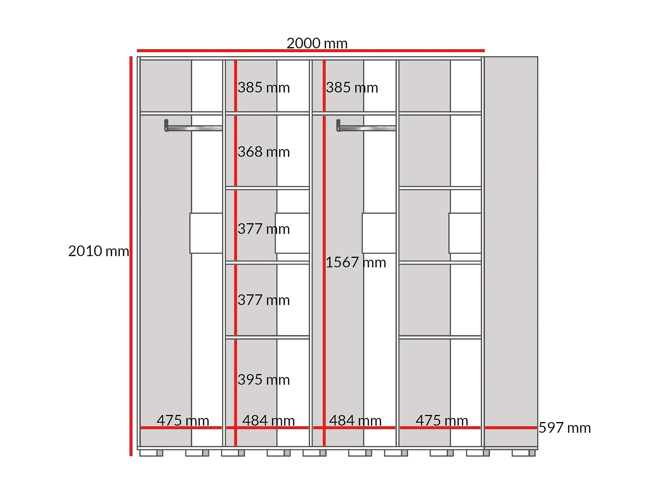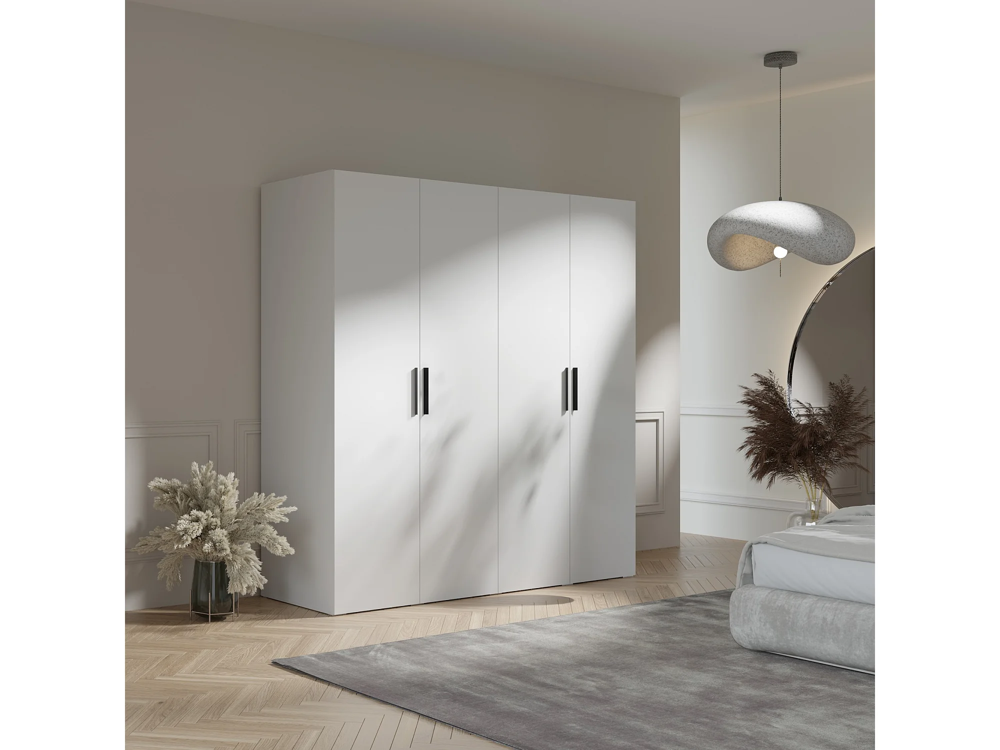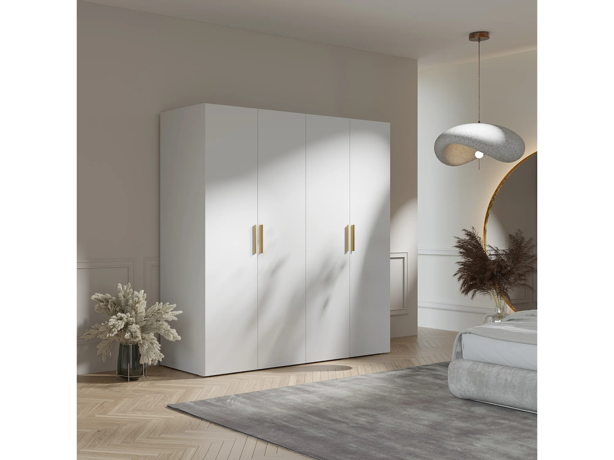 Drehtürenschrank Napoli 4D 200 Weiß (schwarzer oder goldener Griff)