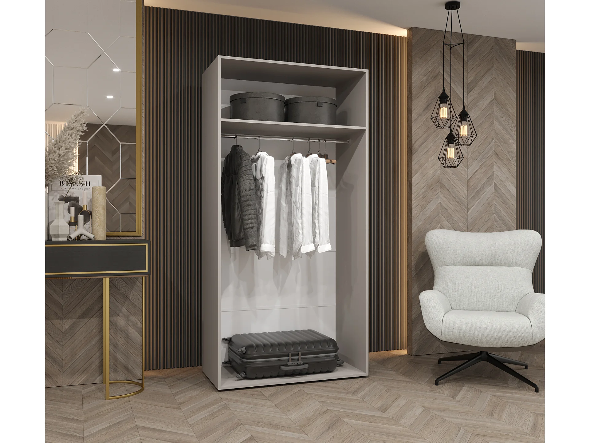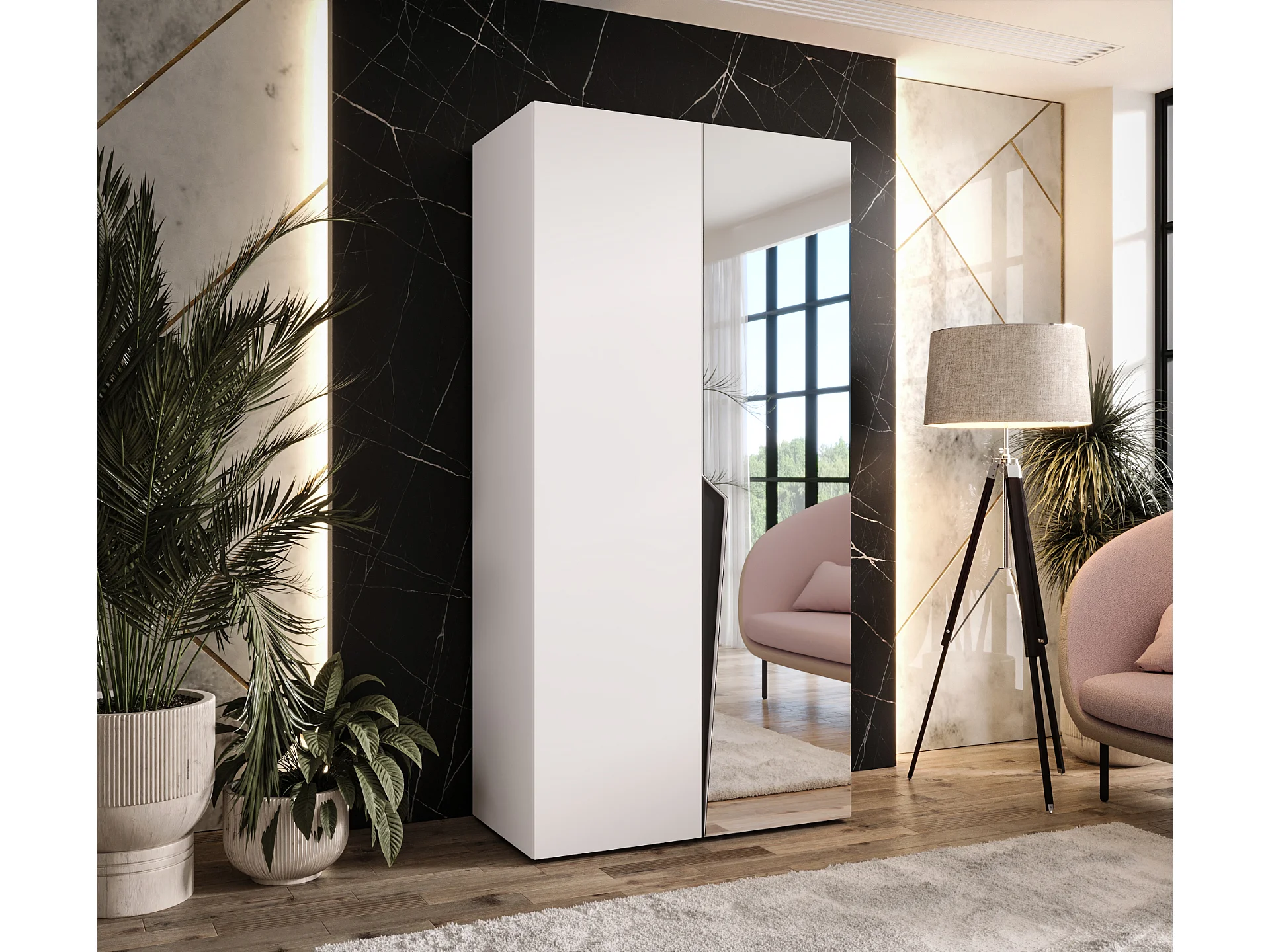 Drehtürenschrank Piano 2 100 / 202 / 52 (Weiß + Griffe: Schwarz)