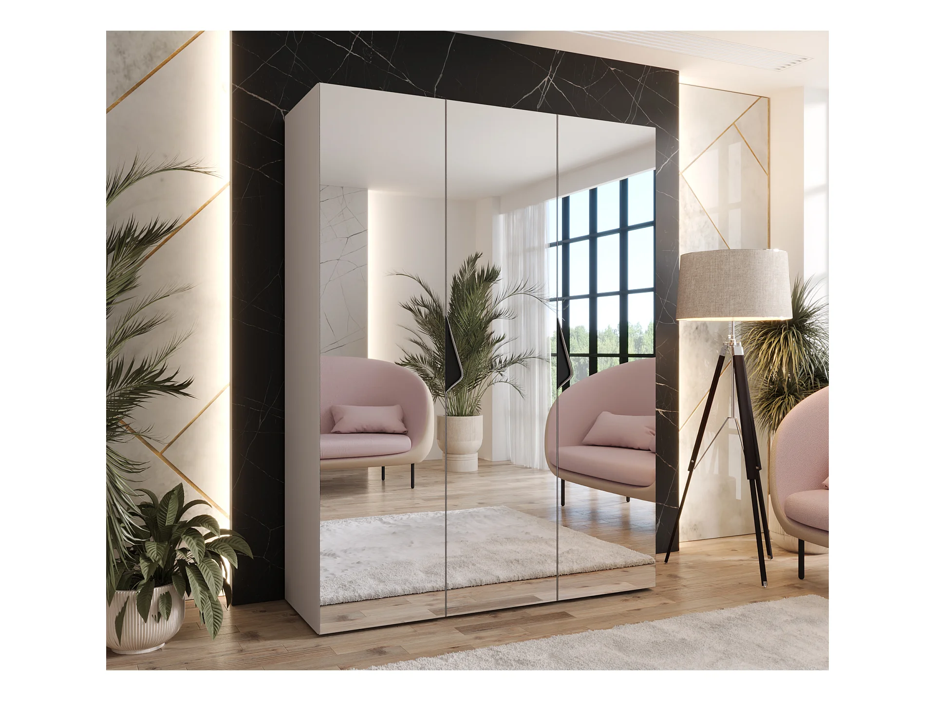 Drehtürenschrank Sandi 3 150 / 202 / 52 (Kaschmir + Griffe: Schwarz)