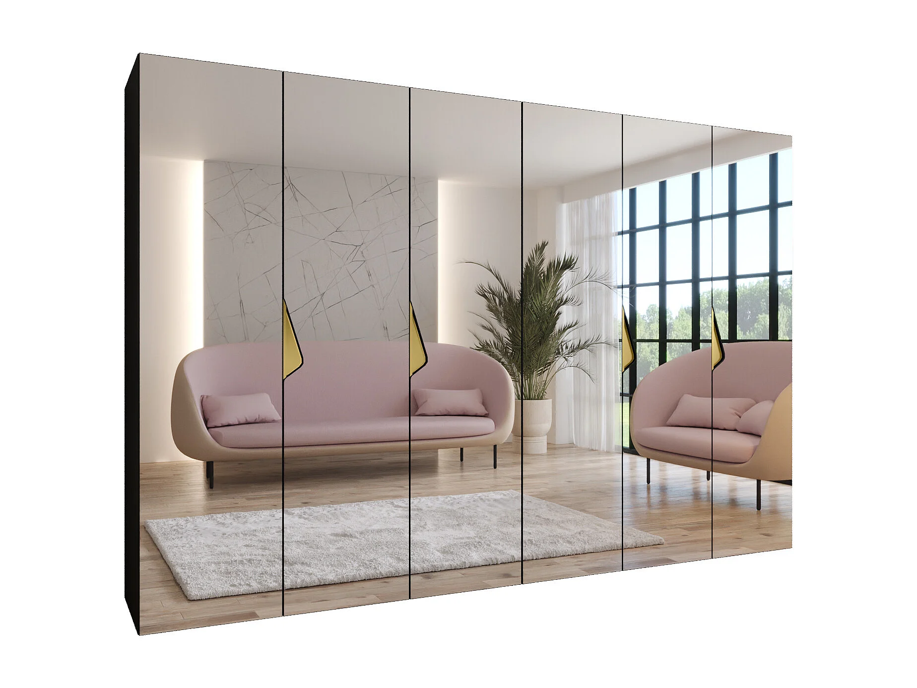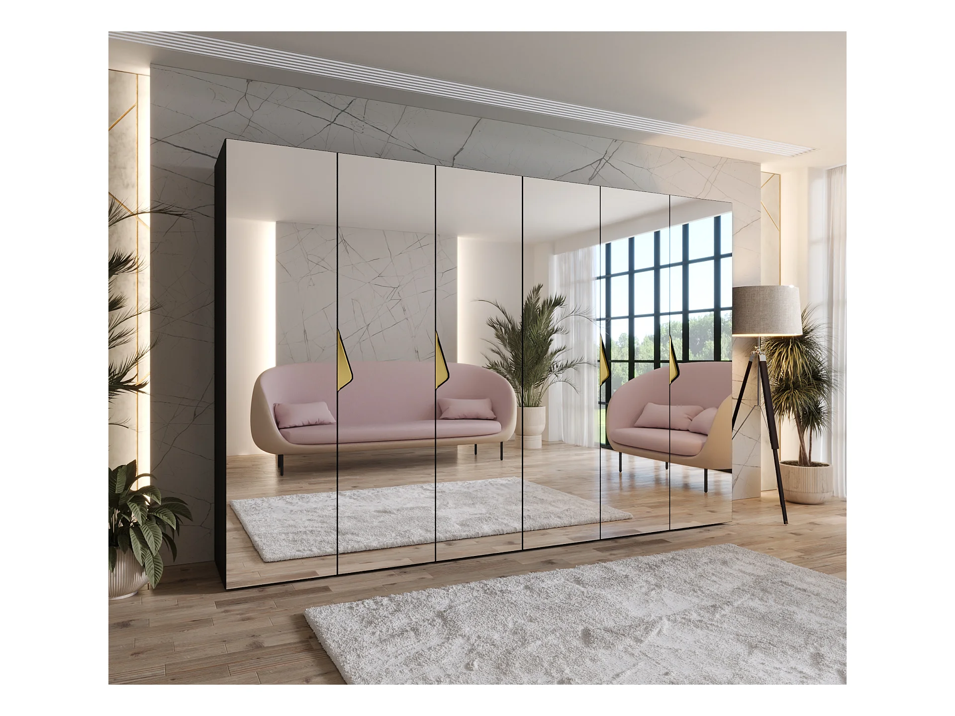 Drehtürenschrank Sandi 3 300 (150x2) / 202 / 52 (Schwarz + Griffe: Gold)