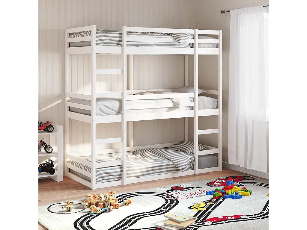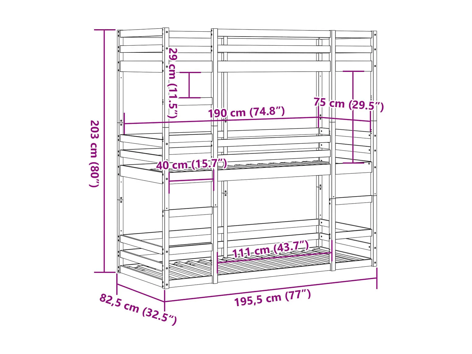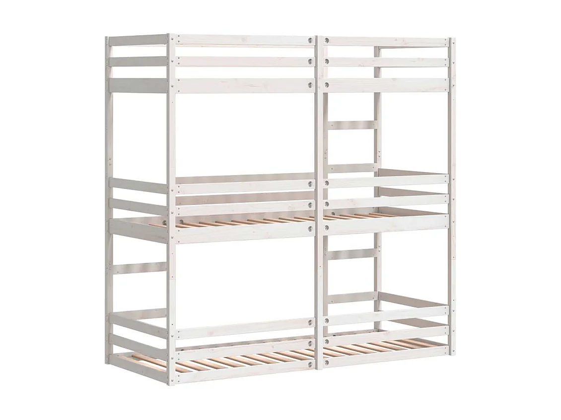 Dreifach-Etagenbett Weiß 75x190 cm Massivholz Kiefer