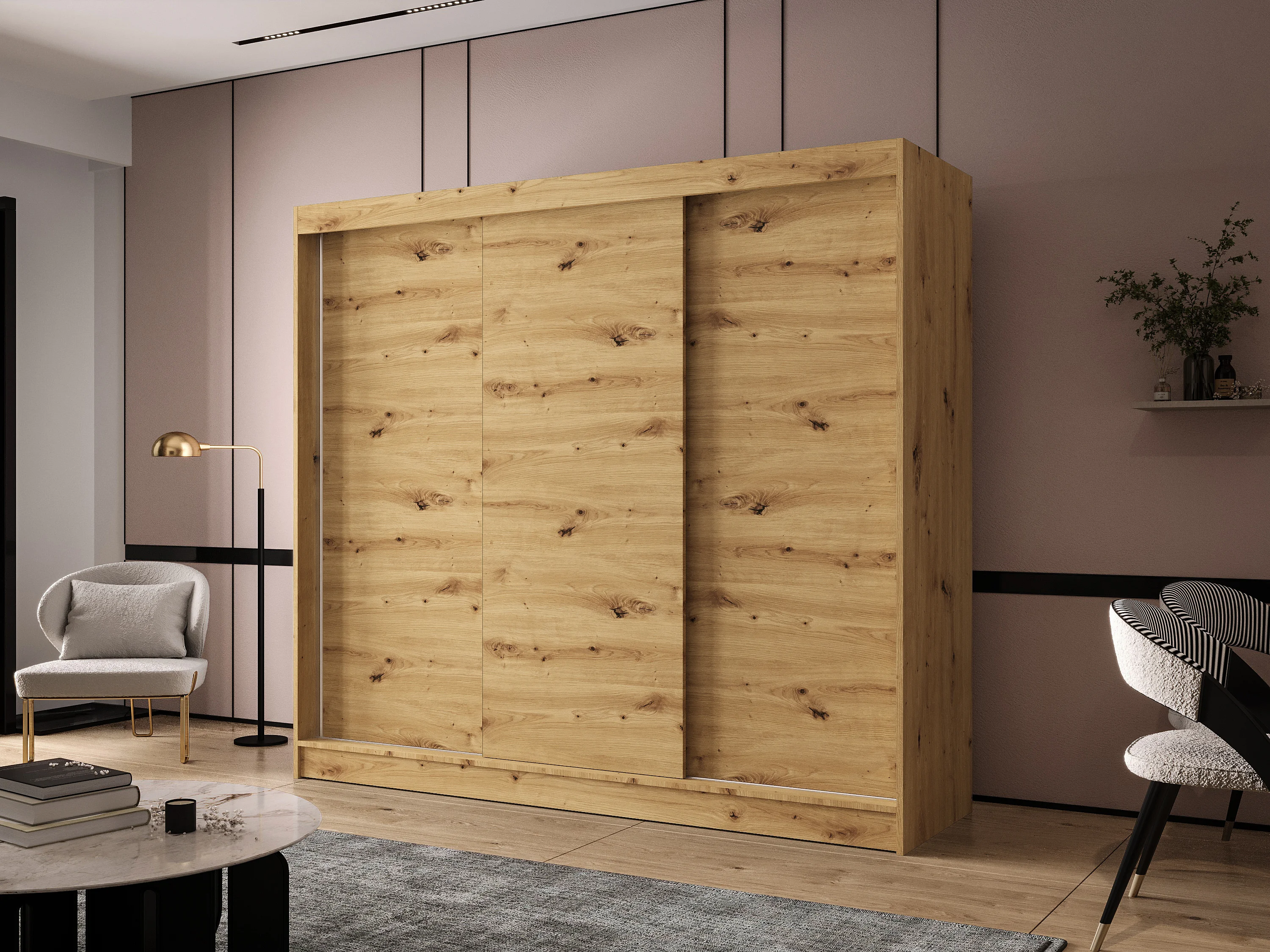 Dreitüriger Schiebeschrank DALLAS DY2, Regalböden und Kleiderstange (Artisan)