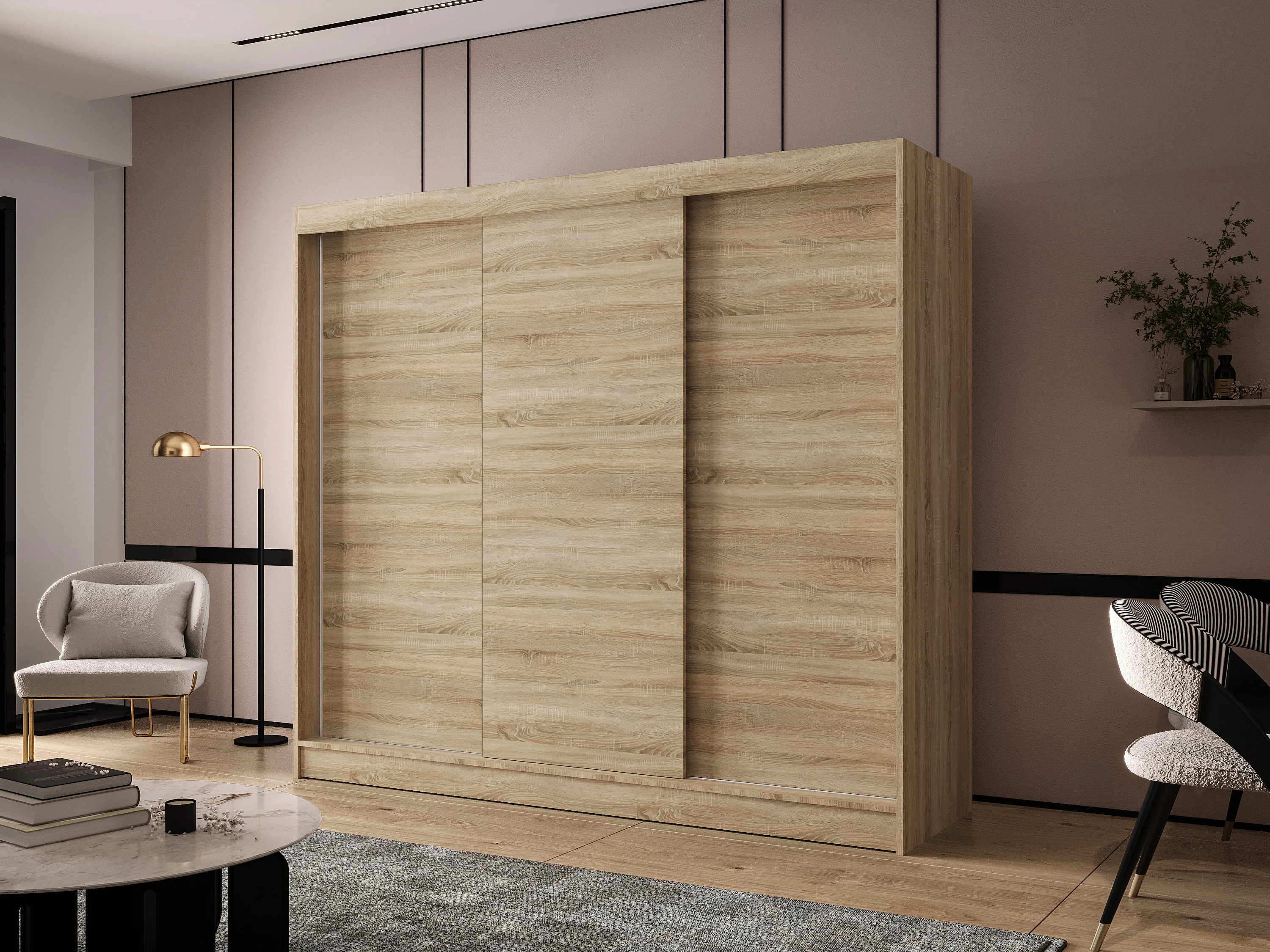Dreitüriger Schiebeschrank DALLAS DY2, Regalböden und Kleiderstange (Sonoma)