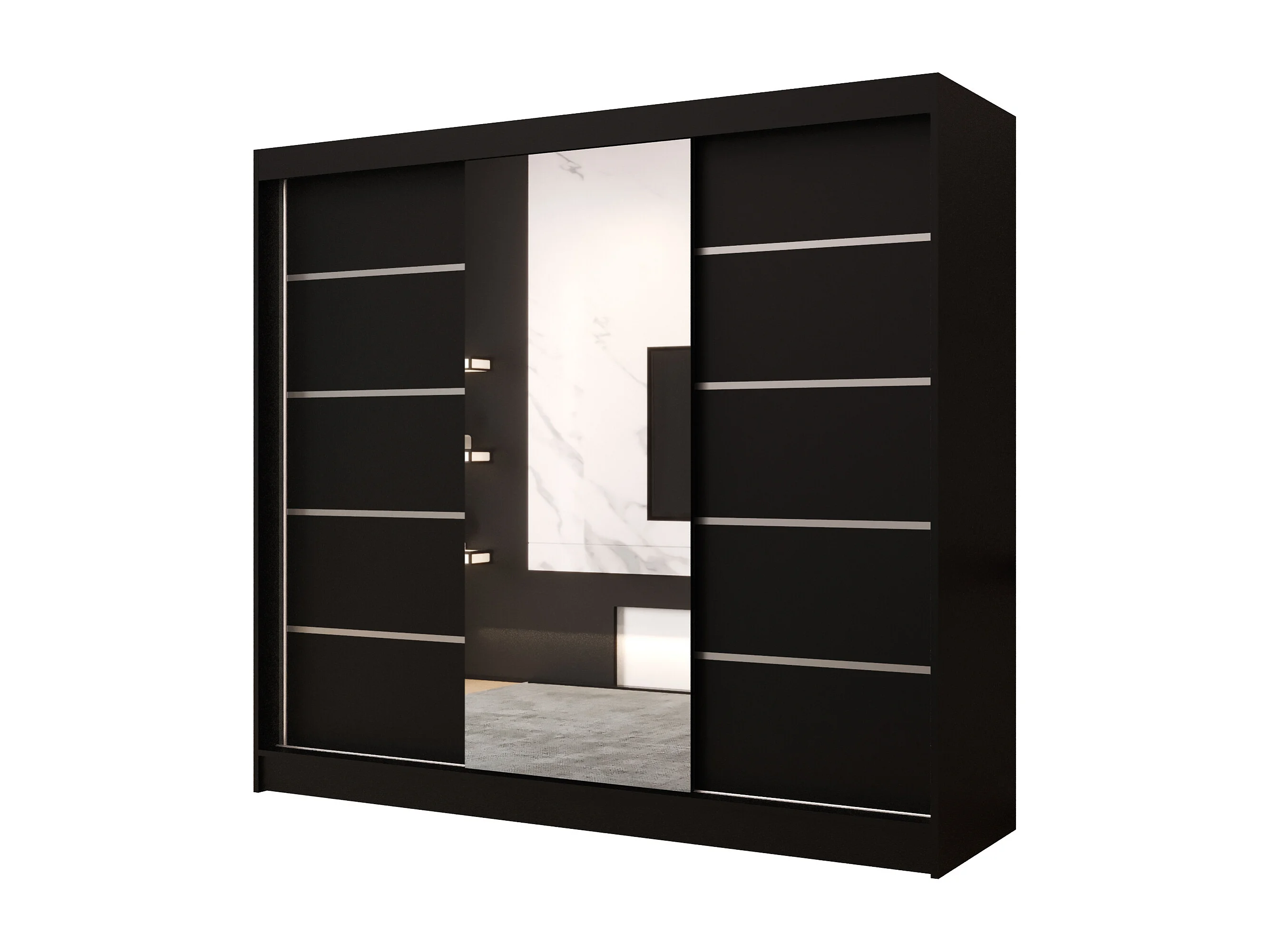 Dreitüriger Schiebeschrank mit Spiegel DALLAS DY6, Regalböden und Kleiderstange (Schwarz)