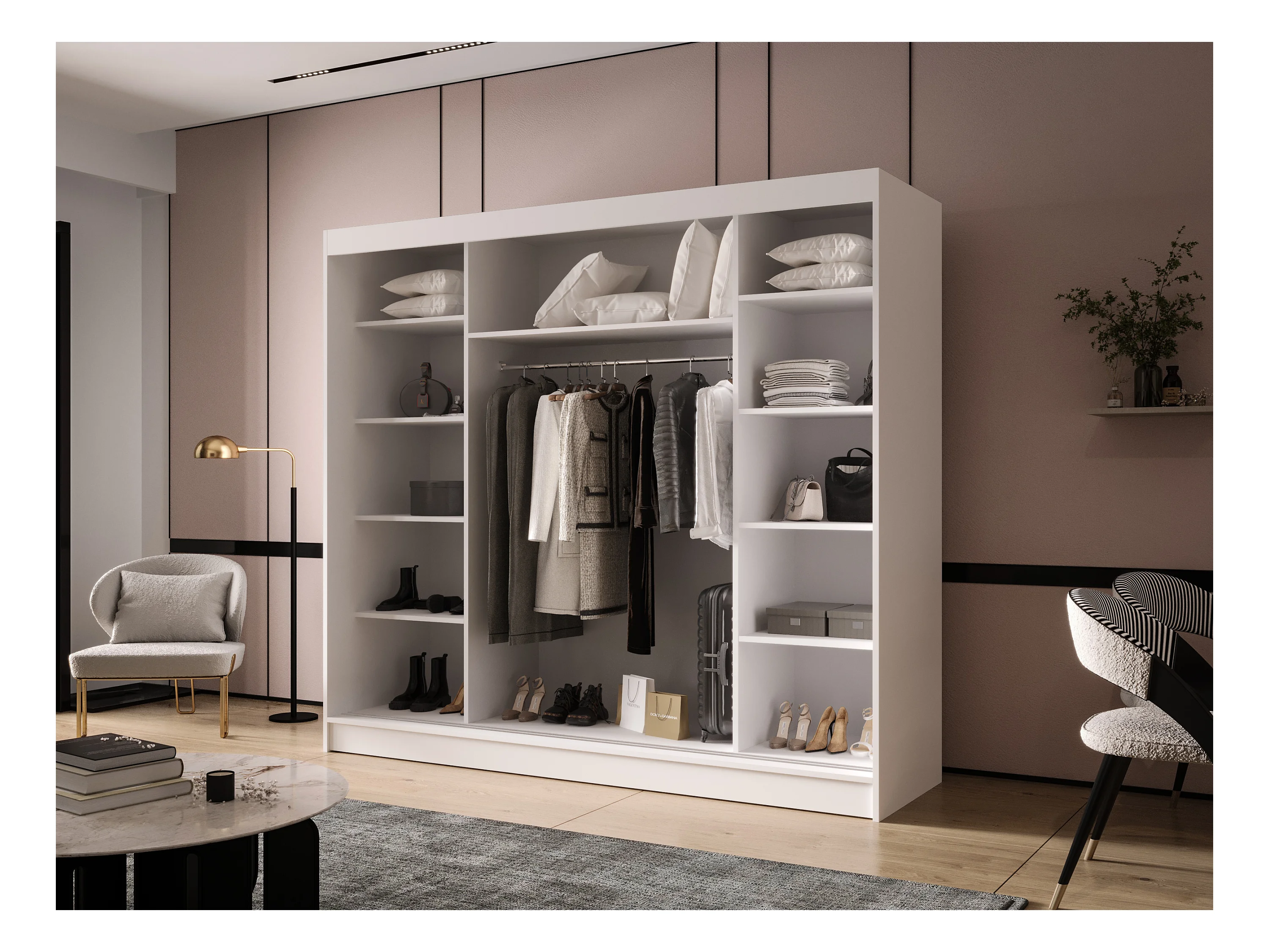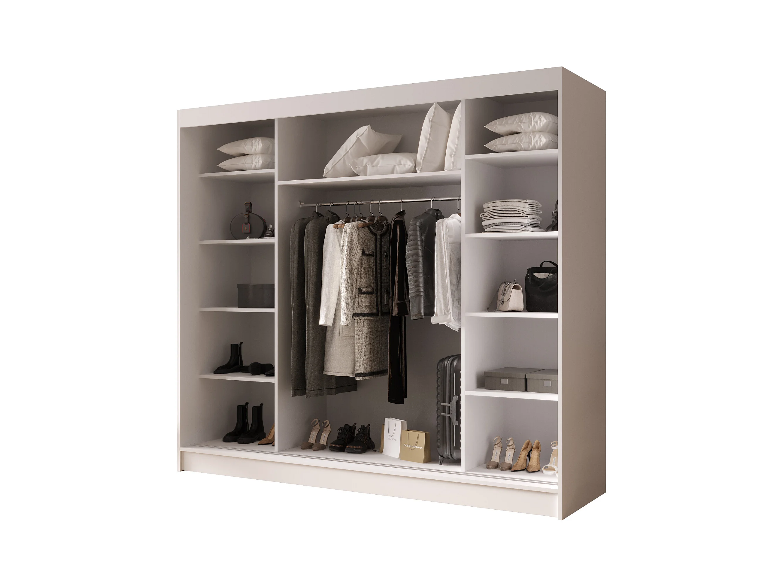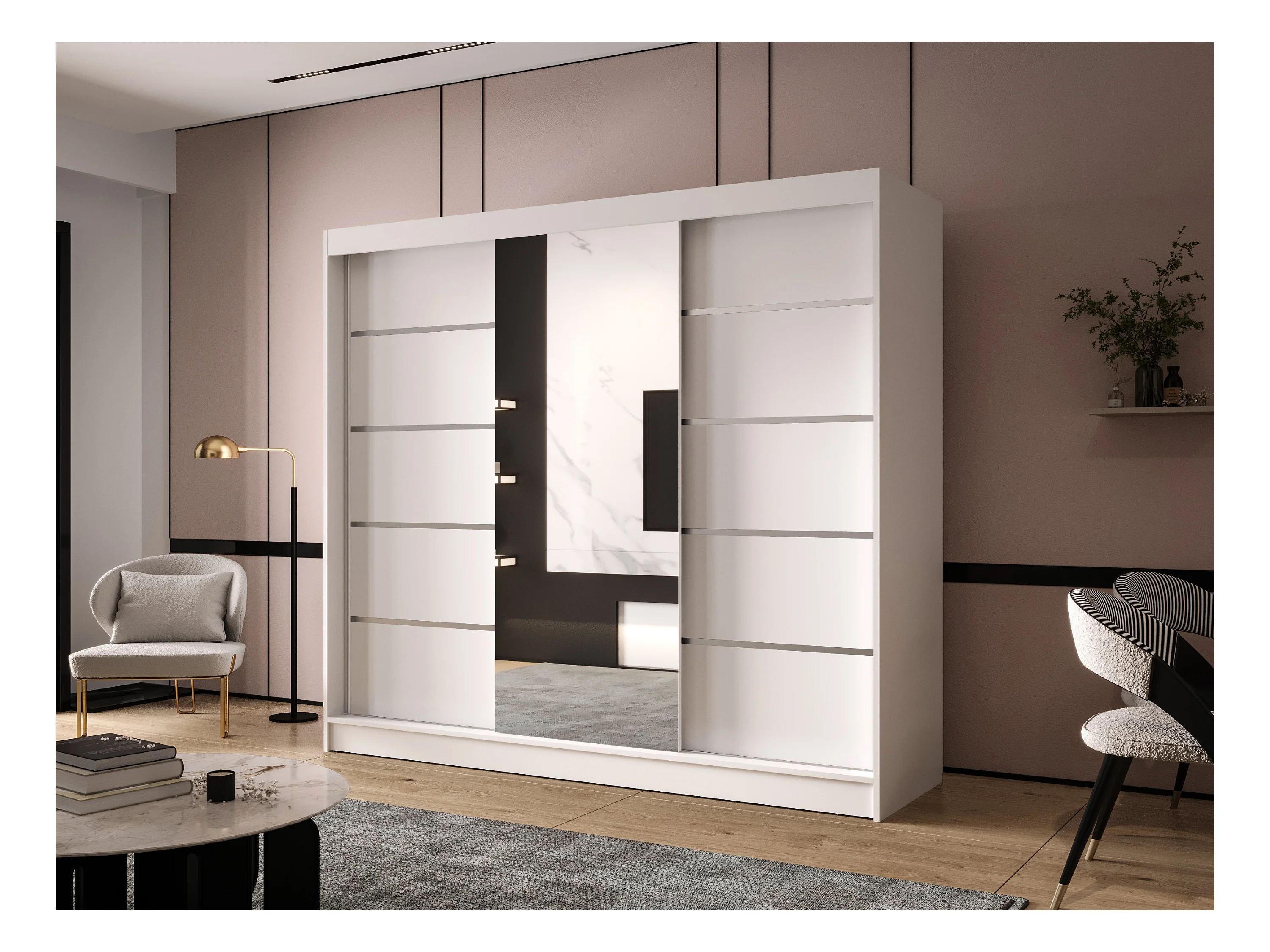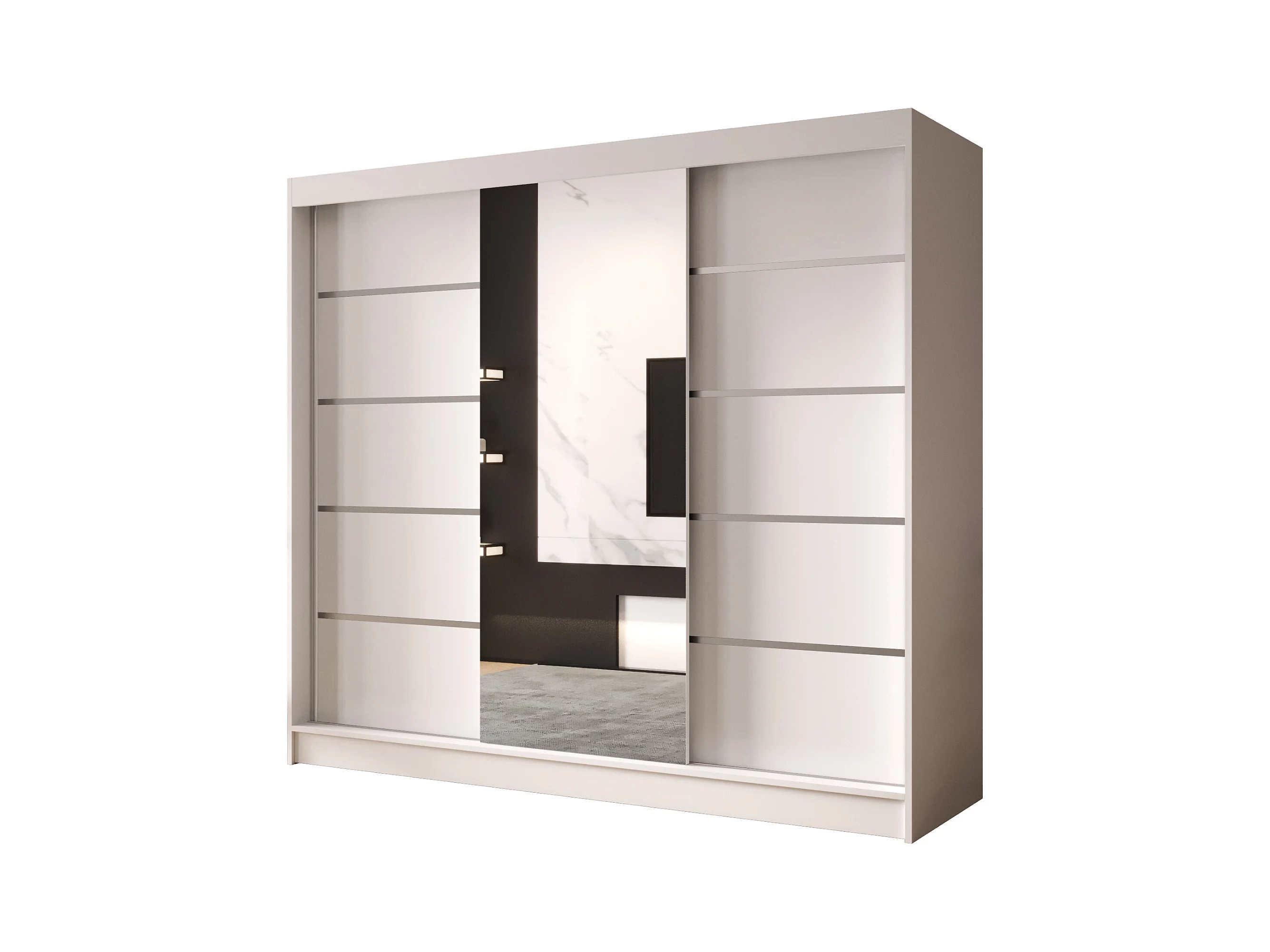 Dreitüriger Schiebeschrank mit Spiegel DALLAS DY6, Regalböden und Kleiderstange (Weiß)