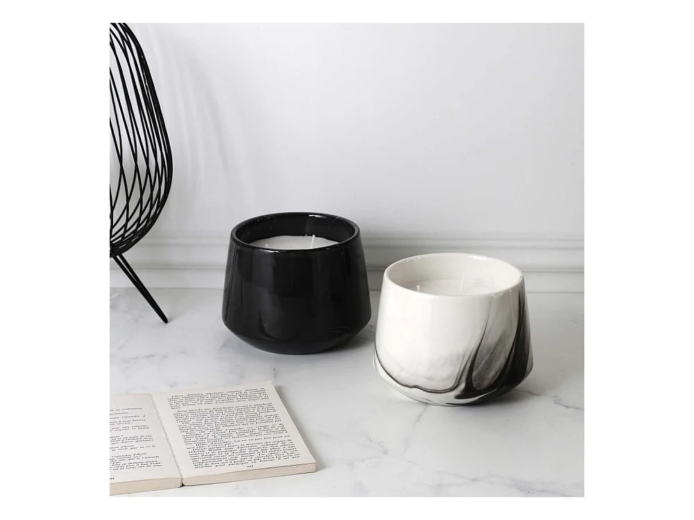 Duftkerze im Topf aus Dolomit mit Marmor Optik (Doppelpack)