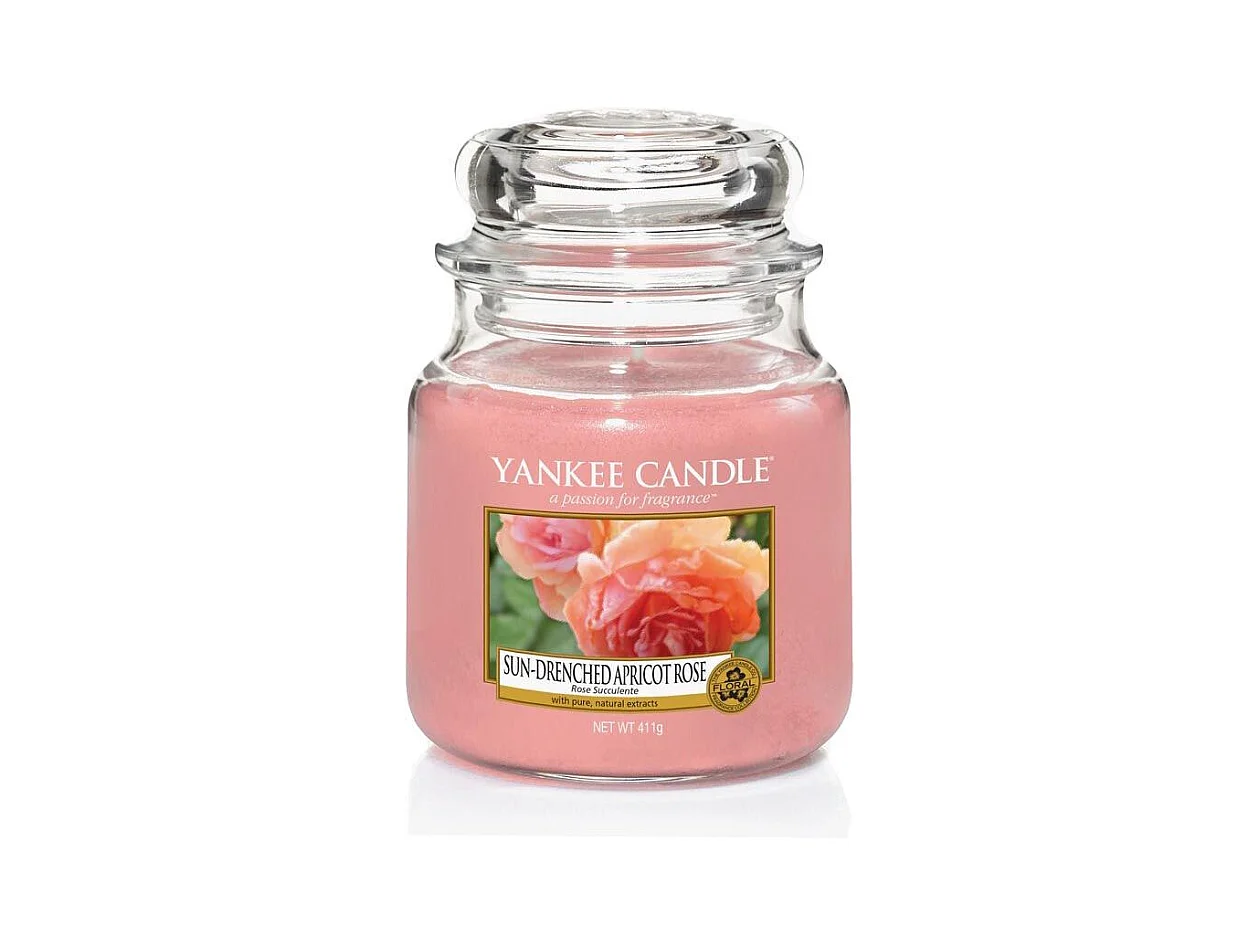 Duftkerze Roseblüte und Aprikose im Glas mit Deckel