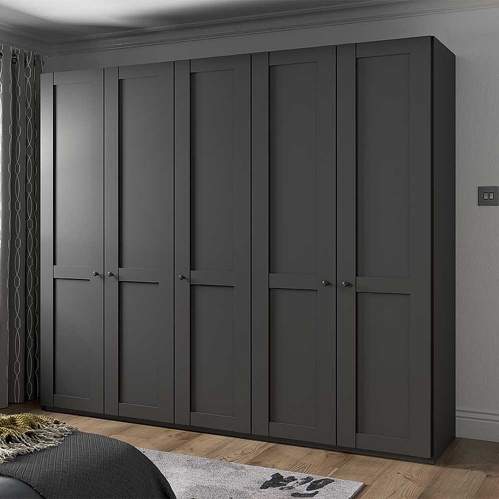Dunkelgrauer Kleiderschrank im Landhausstil wahlweise mit LED Beleuchtung