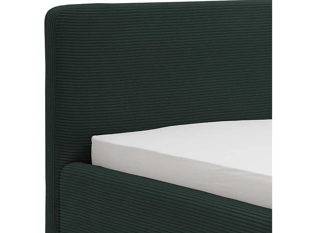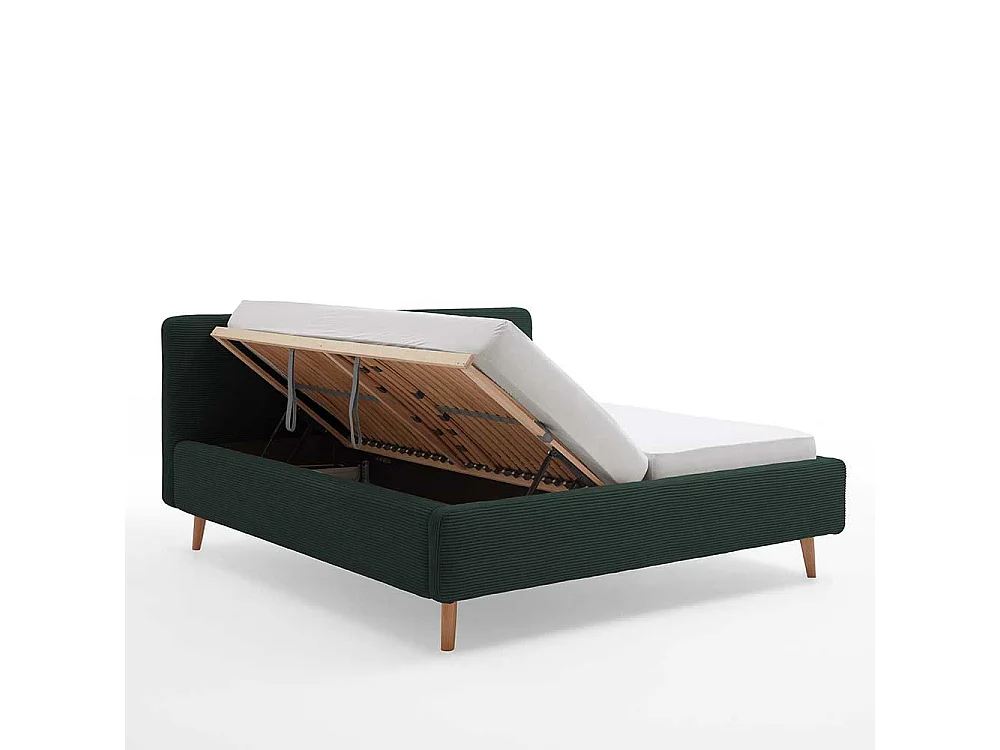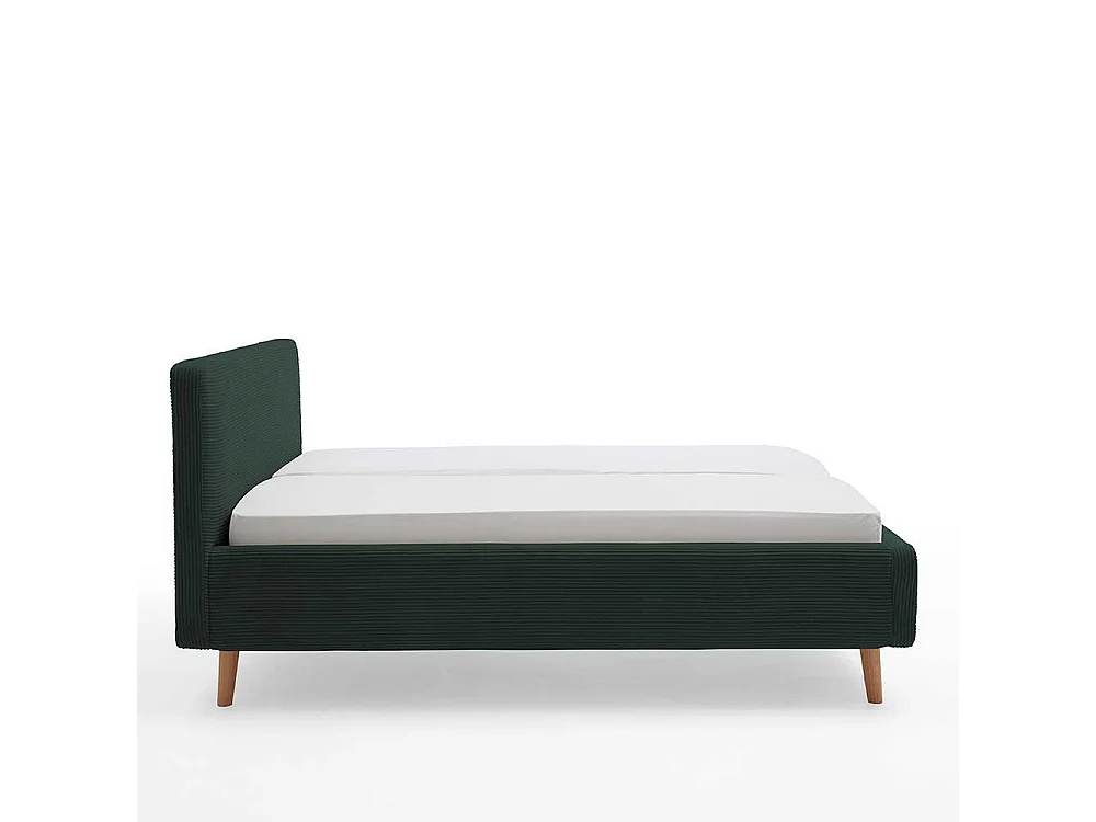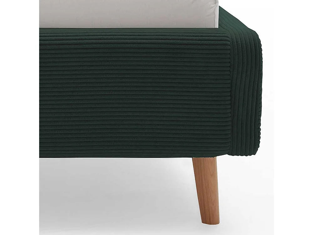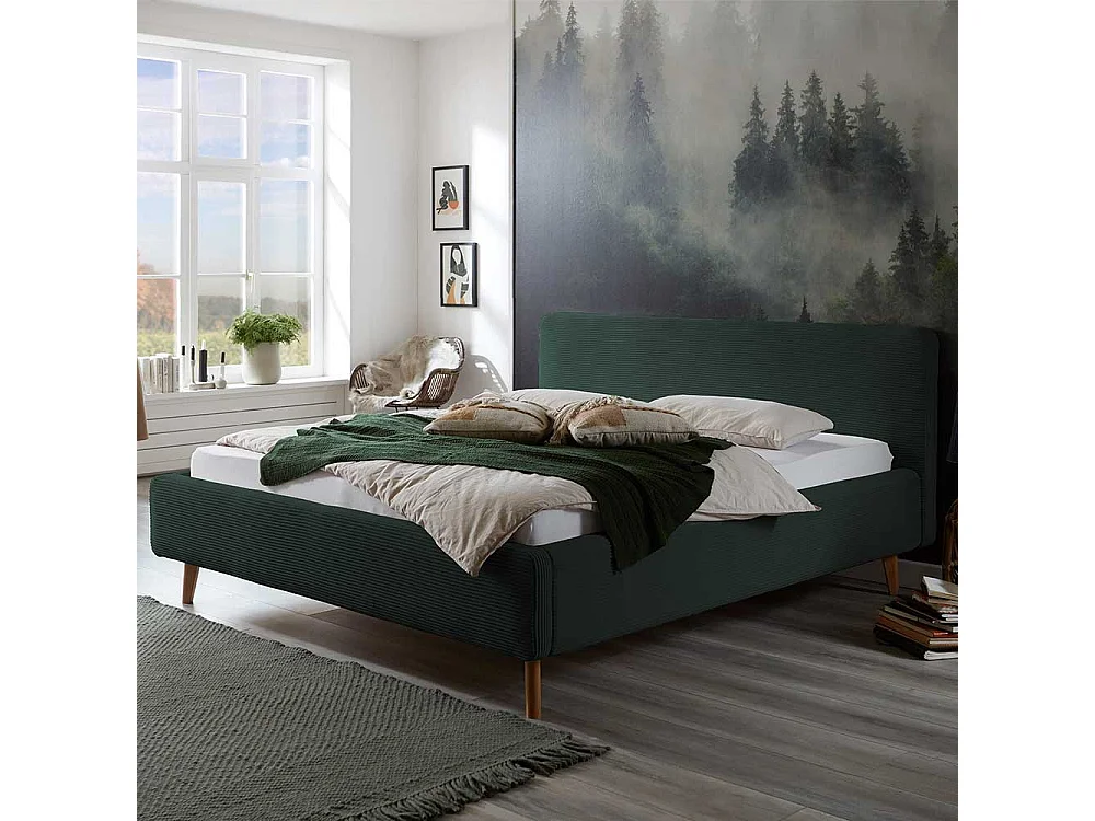 Dunkelgrünes Polsterbett mit Cordbezug Vierfußgestell aus Holz