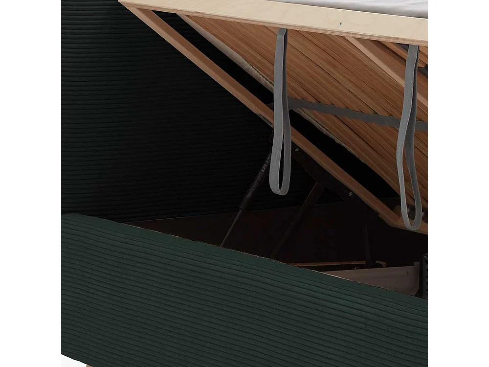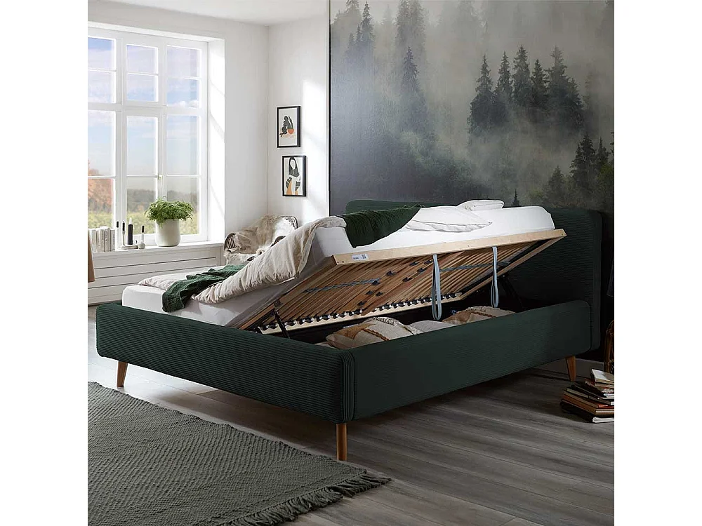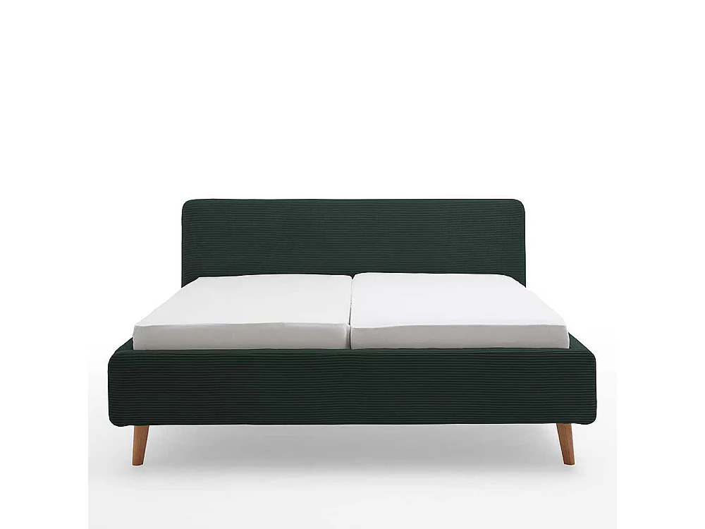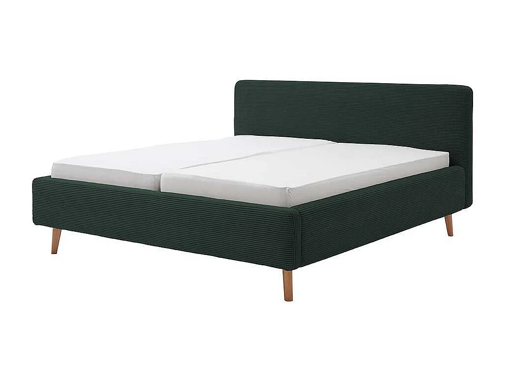 Dunkelgrünes Polsterbett mit Cordbezug Vierfußgestell aus Holz