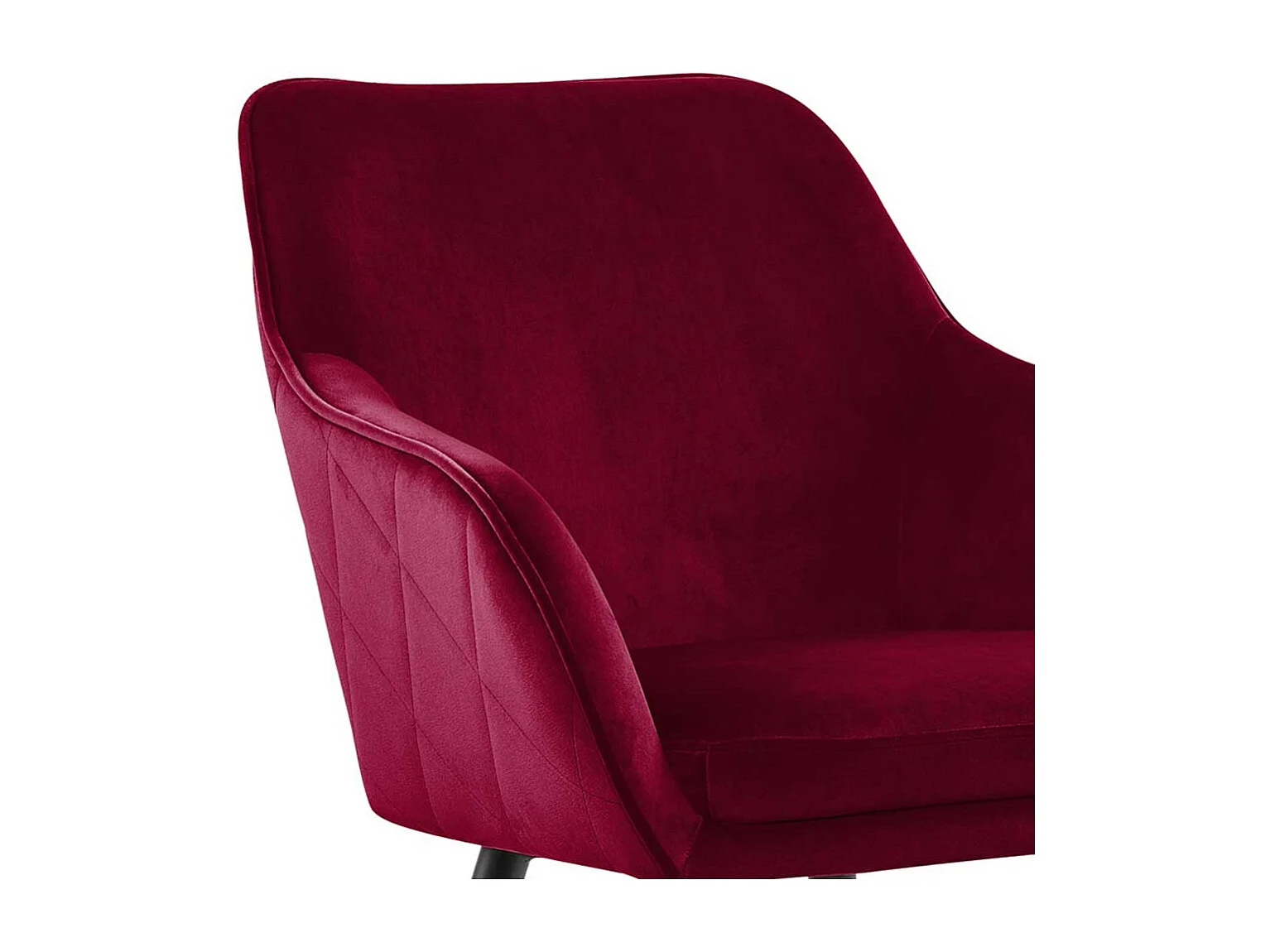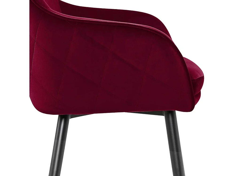 Dunkelroter Samt Stuhl mit Armlehnen außen gesteppt