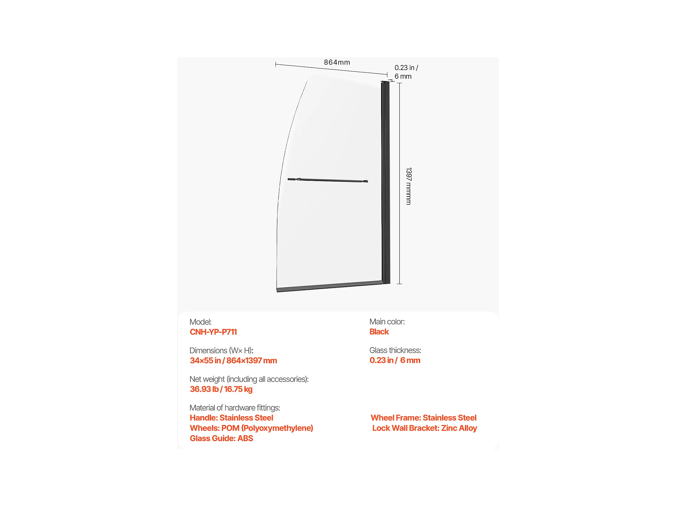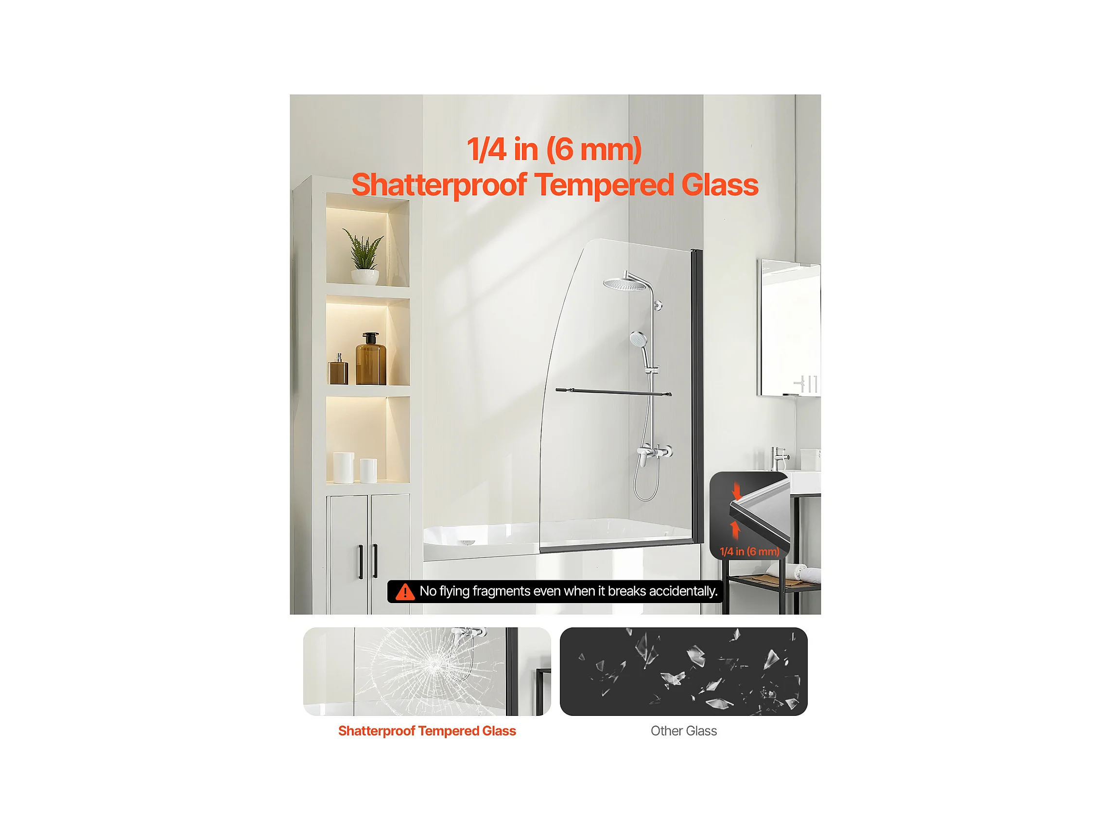 Dusch Tür SucceBuy, Ohne Rahmen, 86 cm B x 140 cm H, 180° schwenkbar, aus Schwarzglas fürs Badezimmer