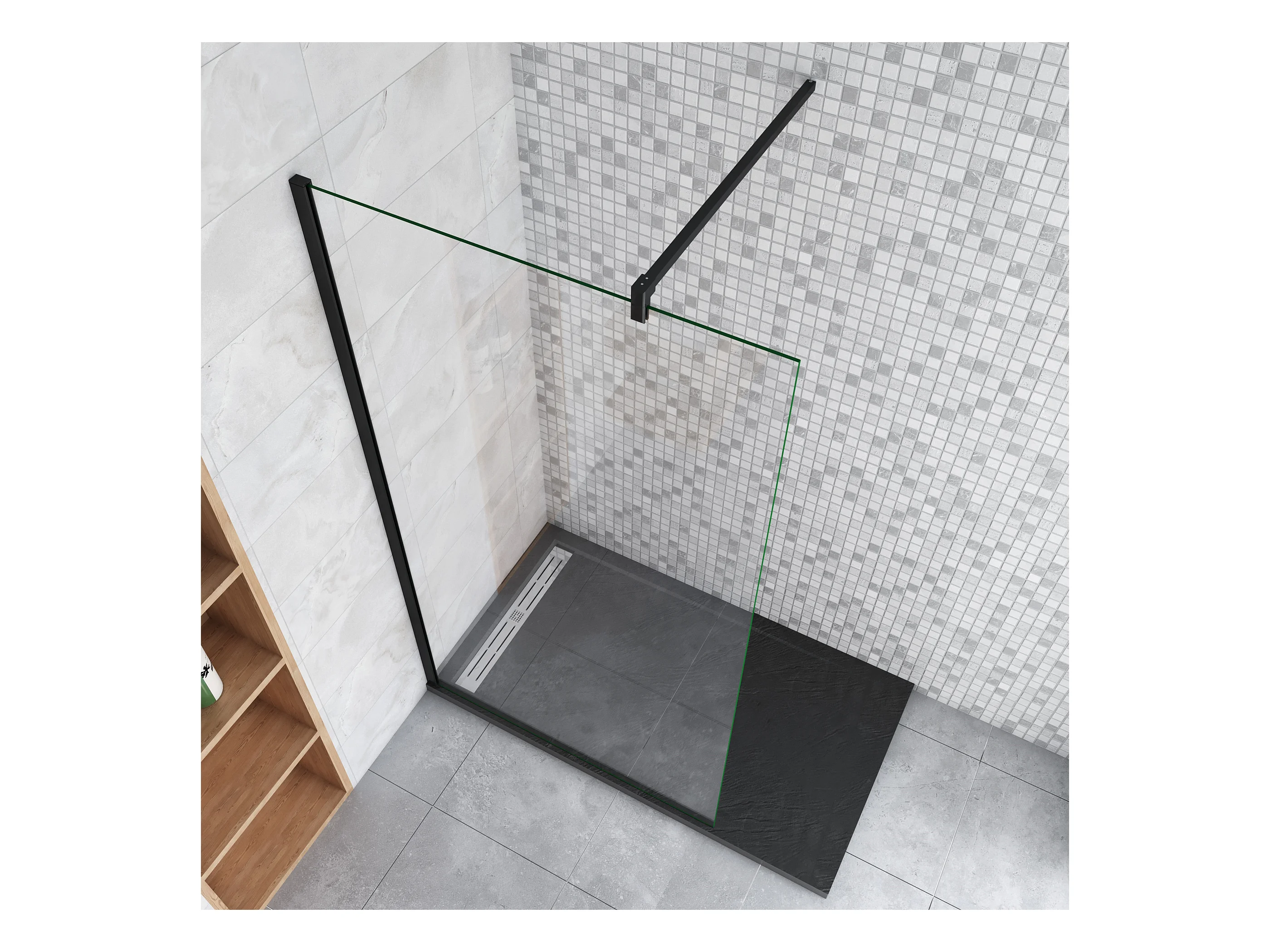 Duschabtrennung Duschwand Walk in 90 Querhaltstange30 cm Gals 10 mm Dicke