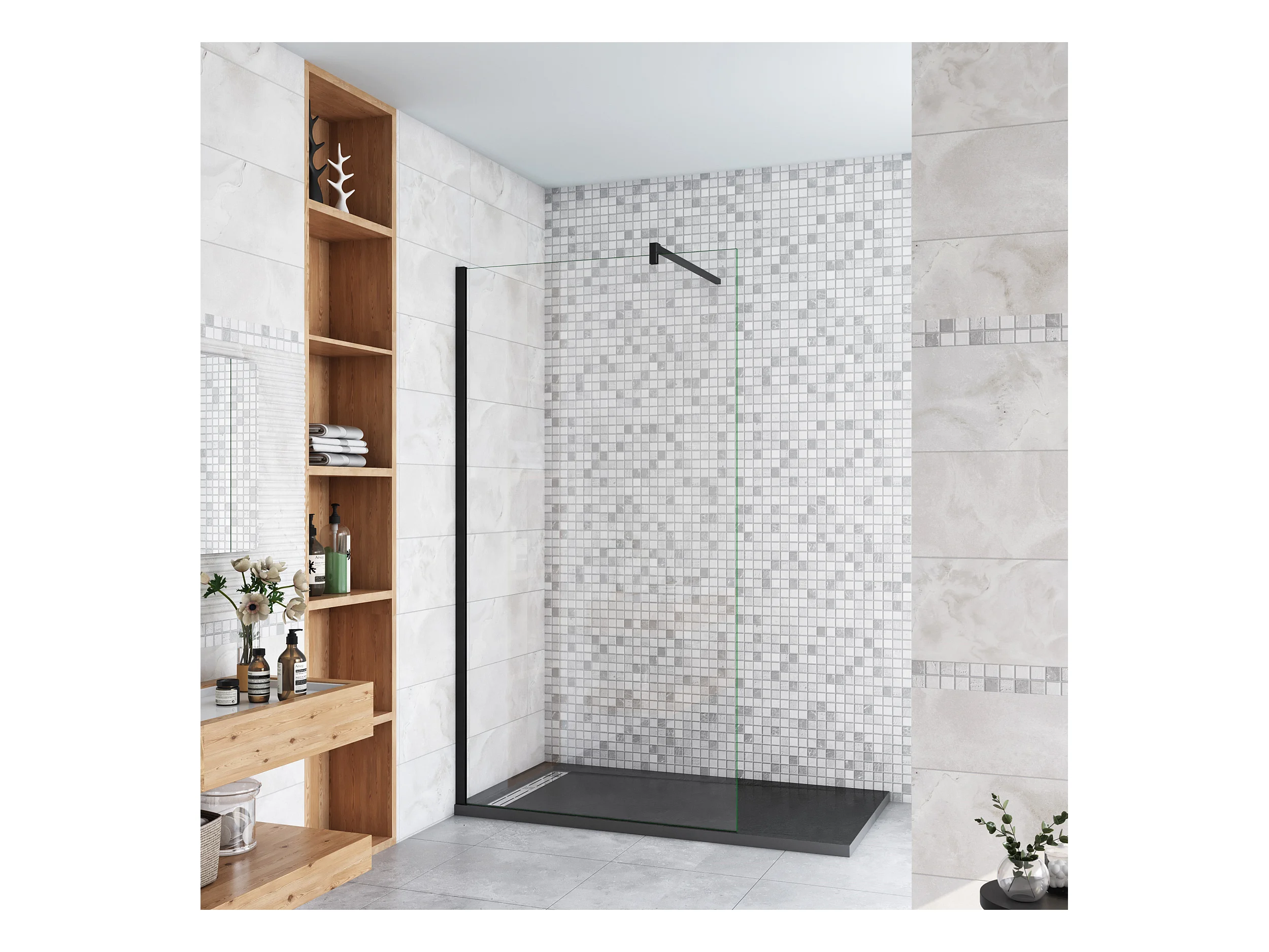 Duschabtrennung Duschwand Walk in 90 Querhaltstange40 cm Gals 10 mm Dicke
