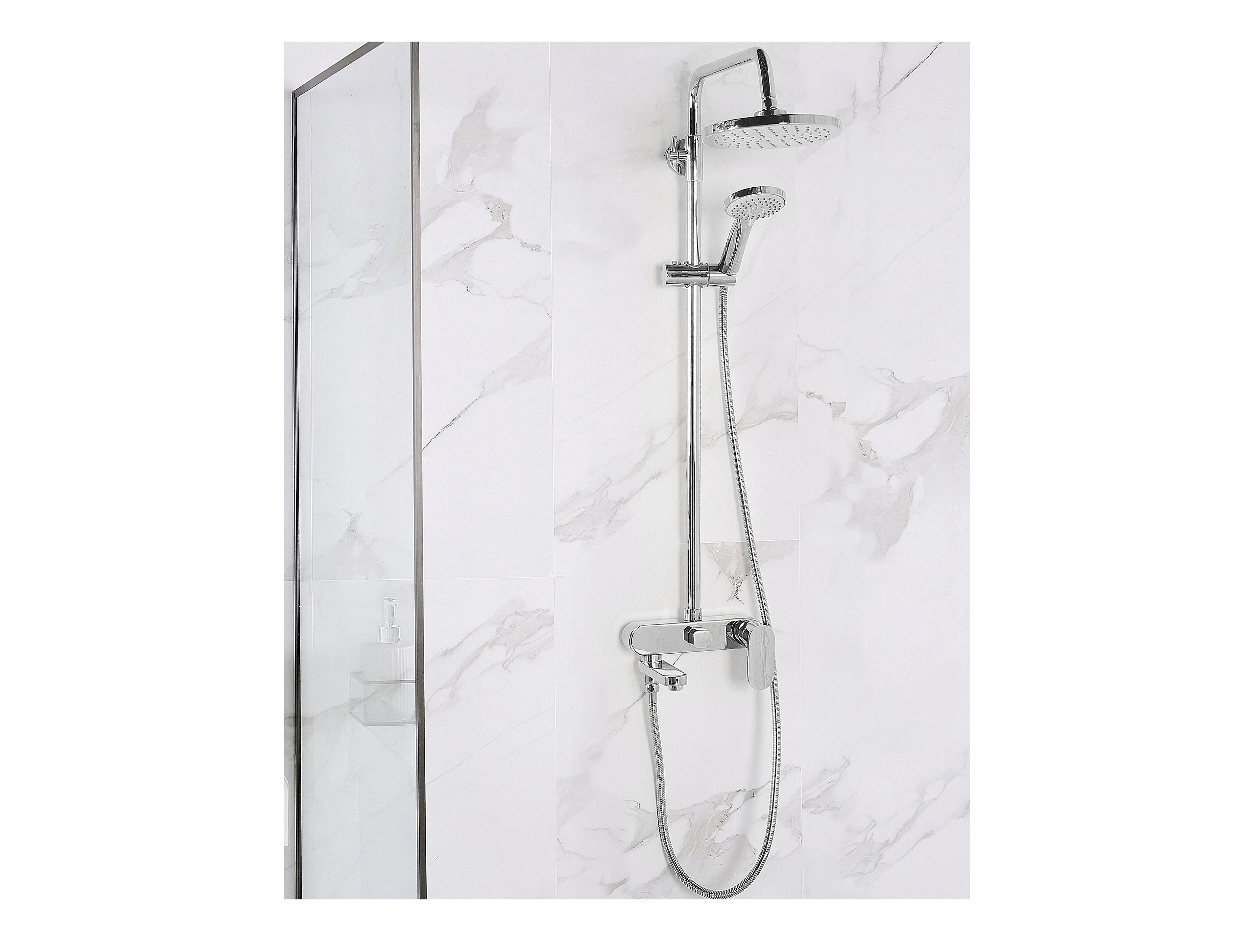 Praktisches Duschsystem silber mit Kopf und Handbrause Messing Gurara