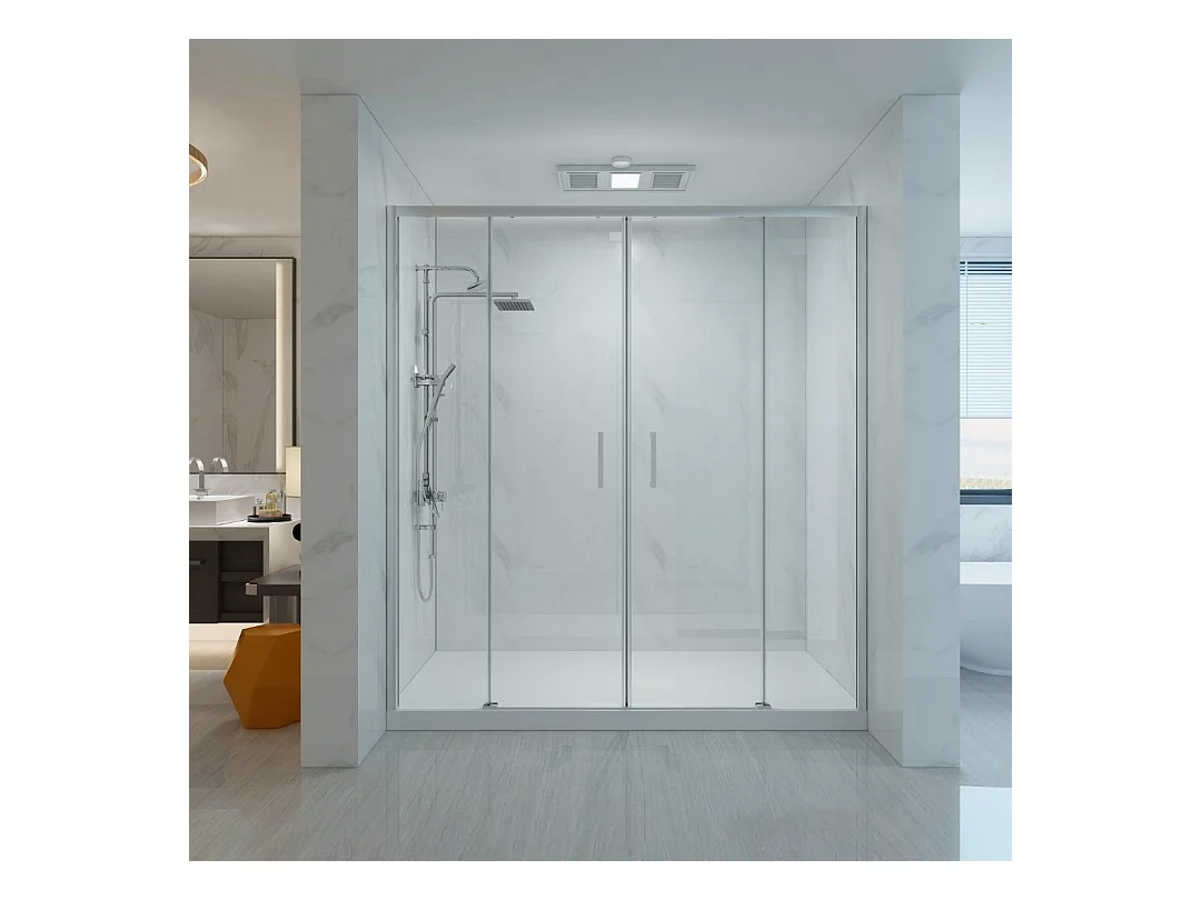 Duschkabine 165 cm Wand mit erleichtertem Eingang mit zwei festen und zwei Schiebegläsern, Höhe 200 cm