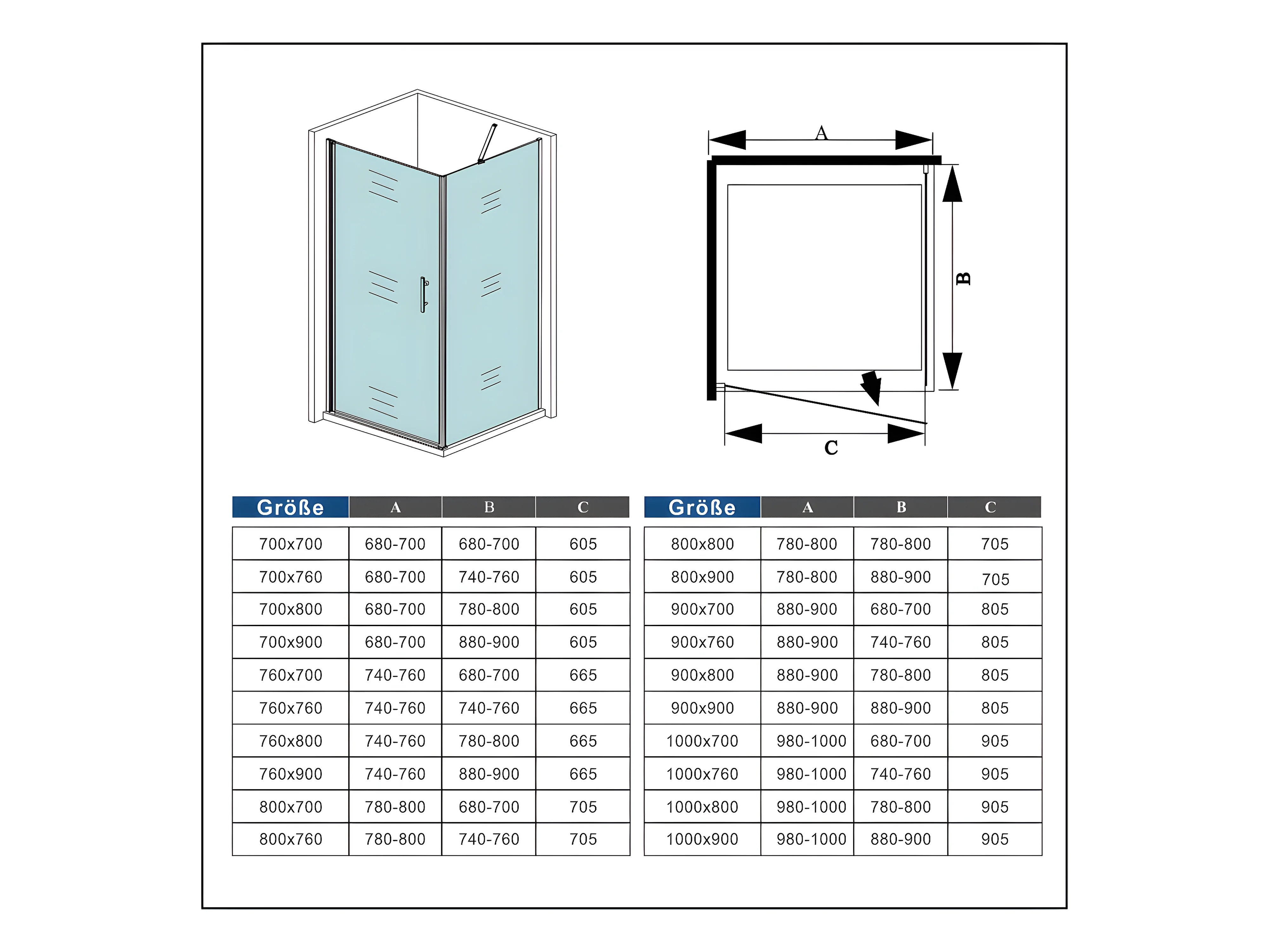 Duschkabine Eckeinstieg Dusche Duschabtrennnung Schwingtür Duschtür 6mm NaNo ESG Glas H 195cm 100X80cm