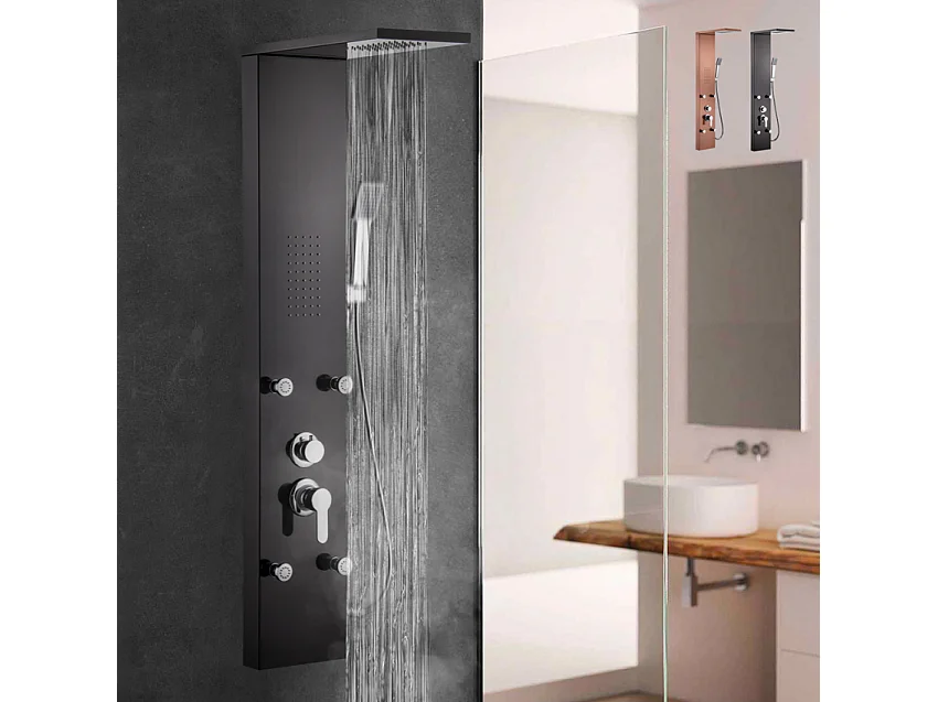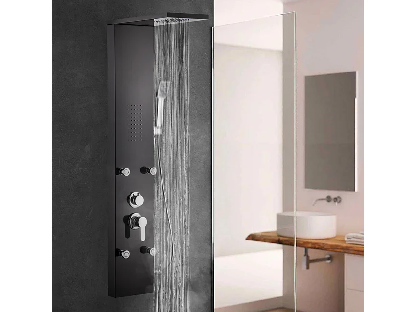 Duschpaneel Duschsäule mit Regenbrause, Handbrause und 4 Körperdüsen Bormio - Schwarz
