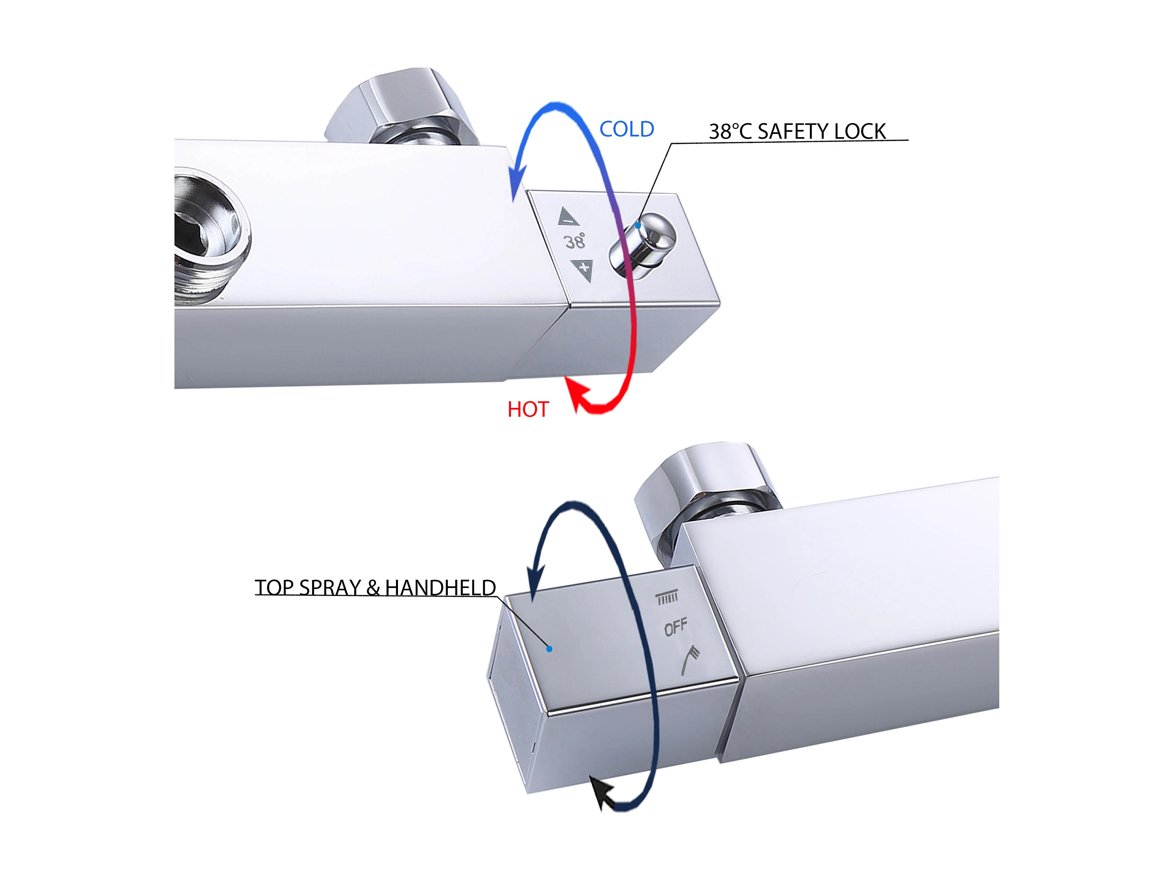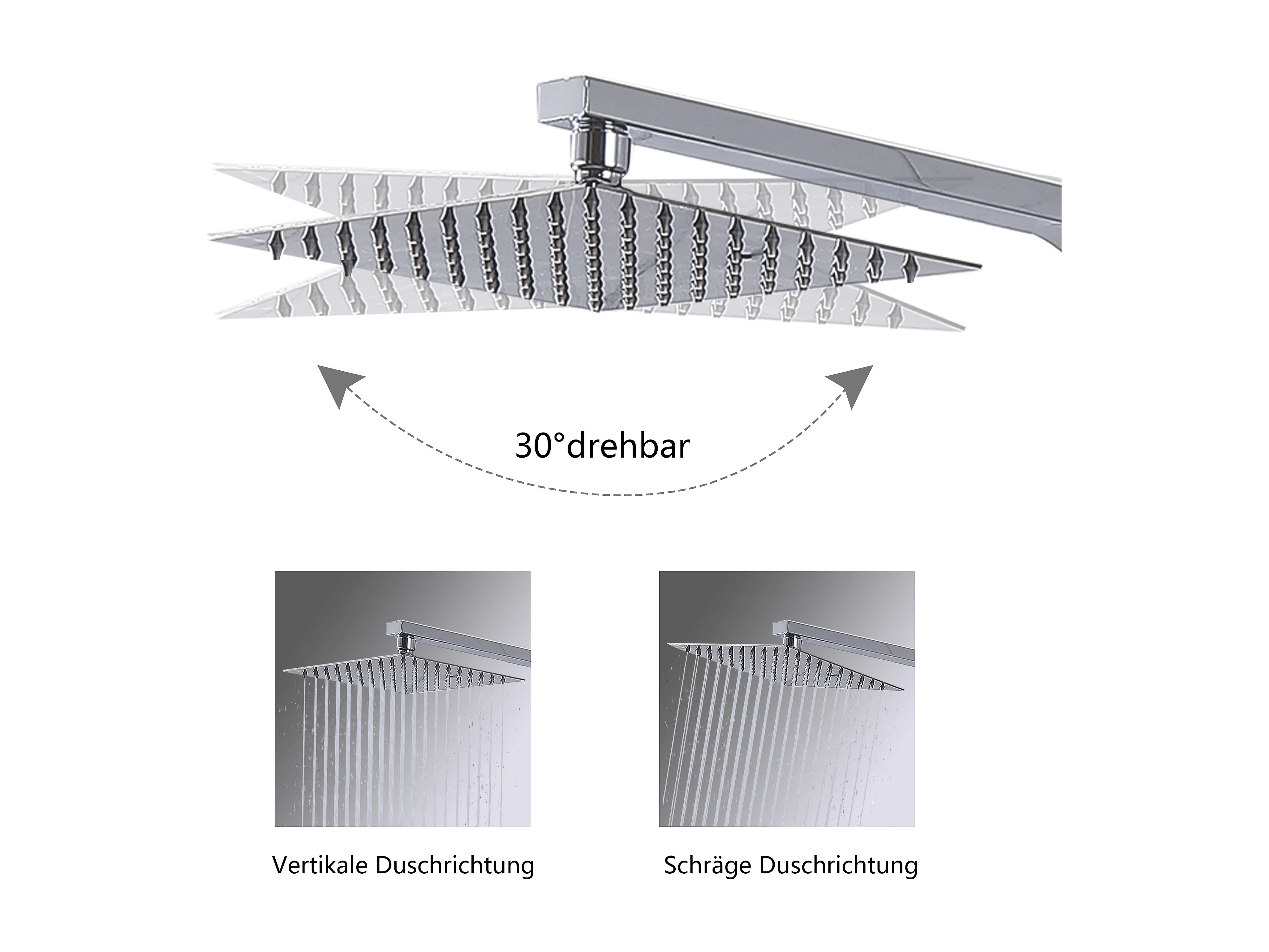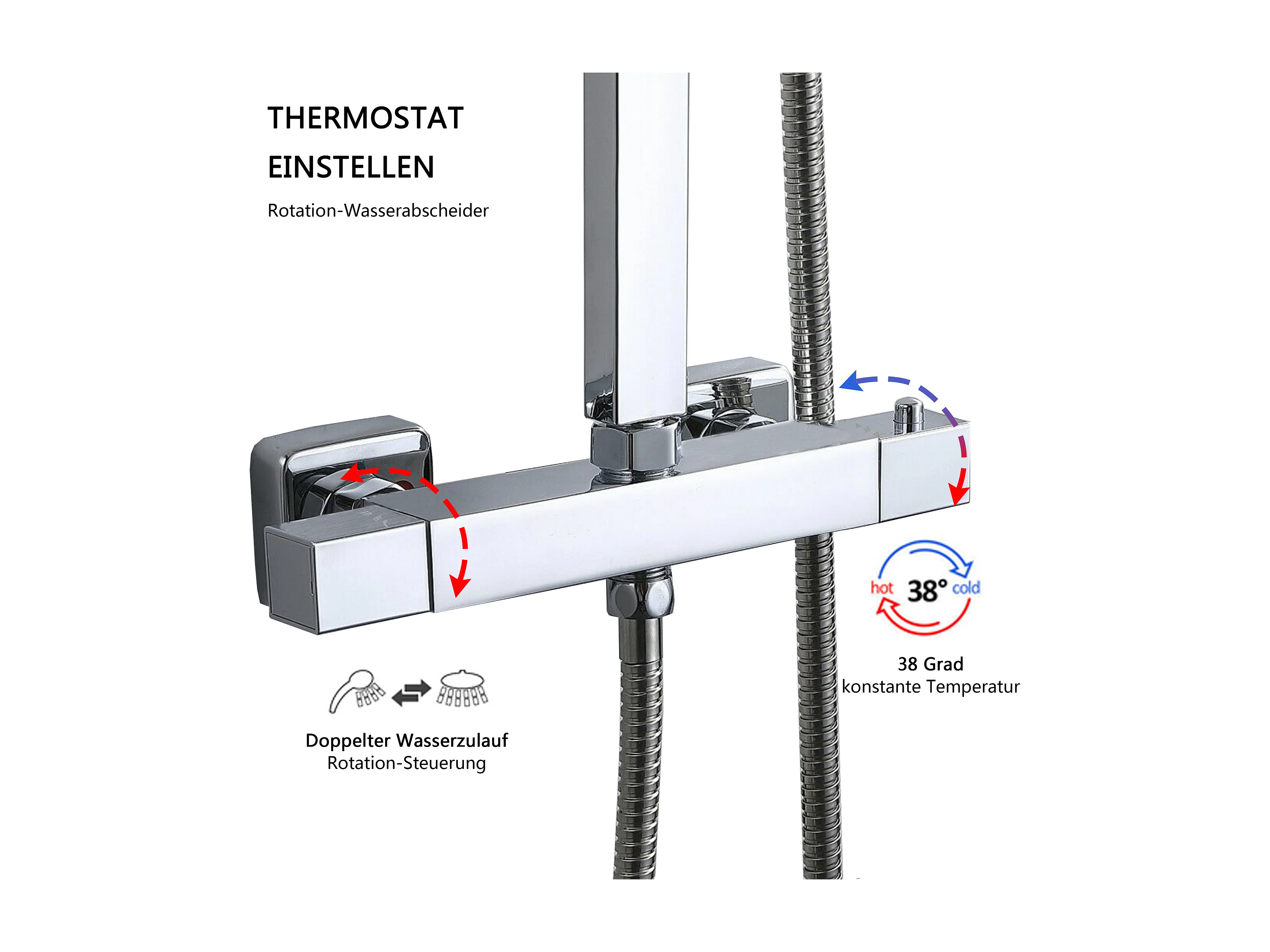 Duschsystem mit Thermostat Chrom,Duscharmatur Edelstahl Regendusche mit Armatur inkl. ABS Handbrause,Kopfbrause,Verstellbarer Duschstange