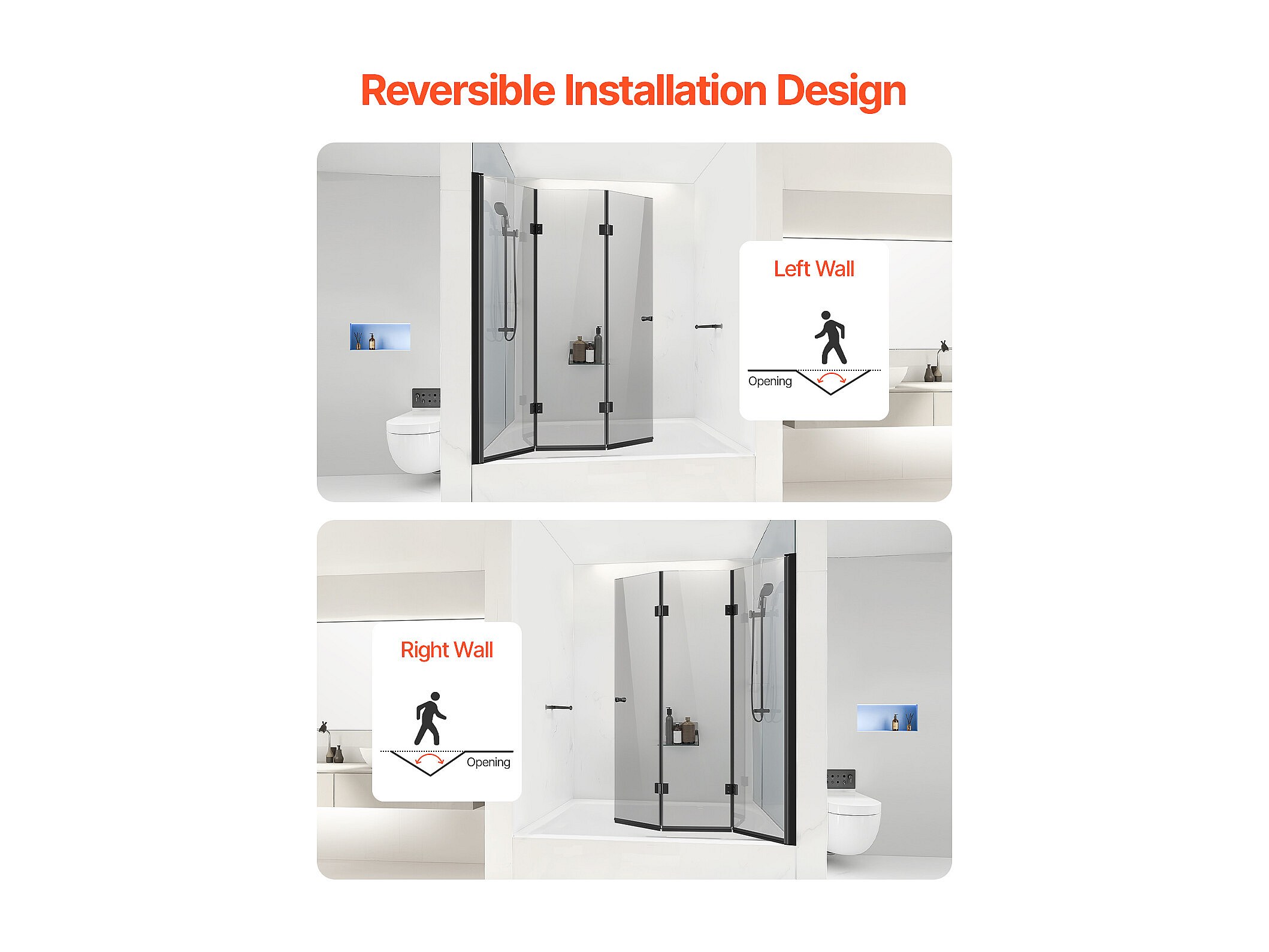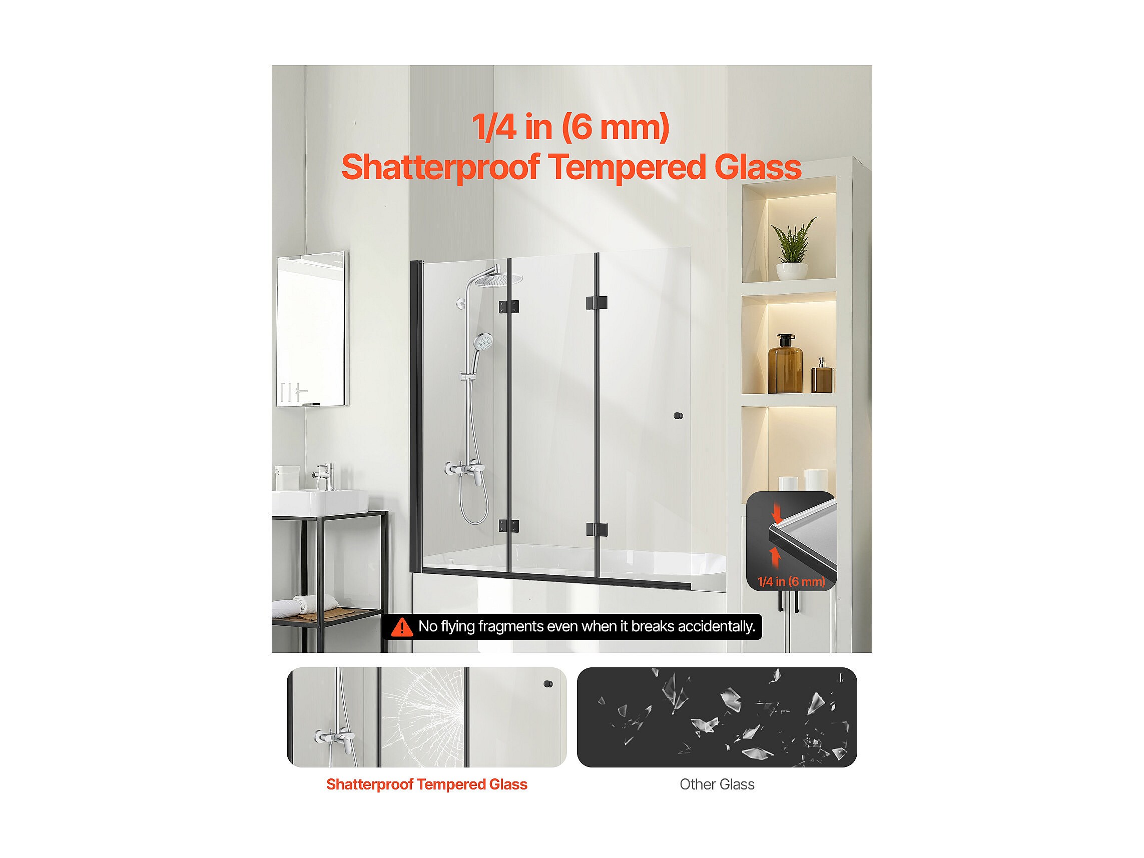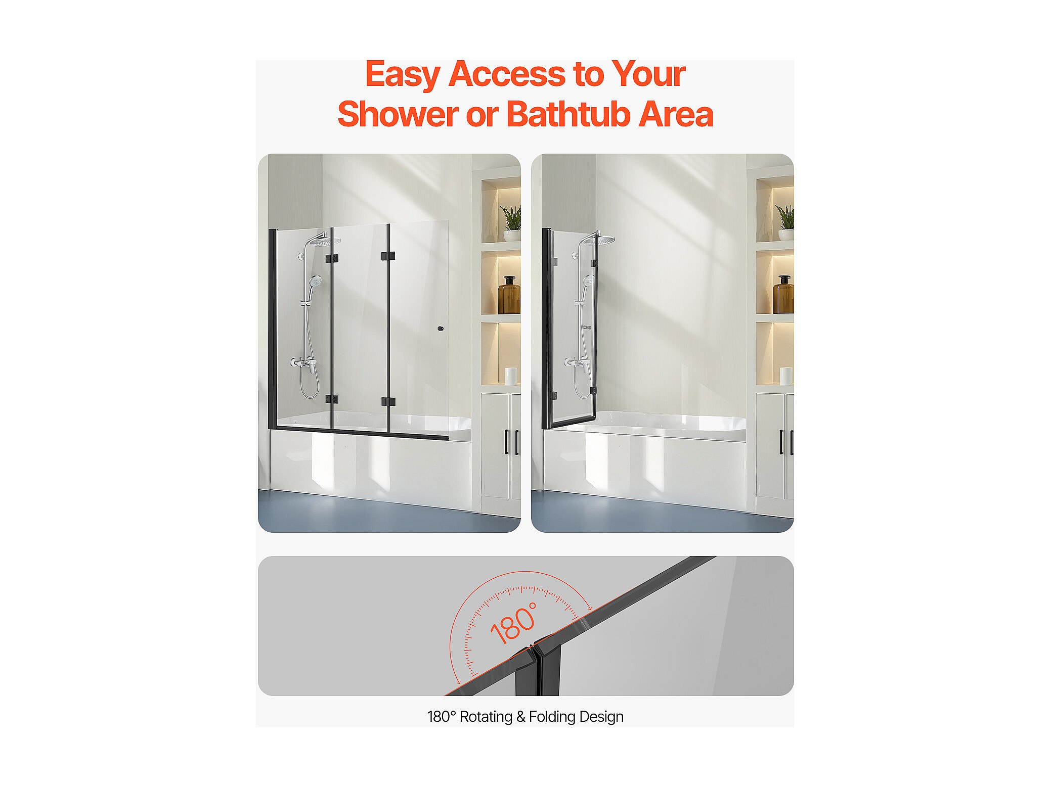 Duschtür SucceBuy Rahmenlose Badewannen-Duschtür 1295 x 1422 mm, 3-teilige Faltbare Badewannenabtrennung mit 6 mm Gehärtetem Glas, 180°-Dreh- und Faltdesign