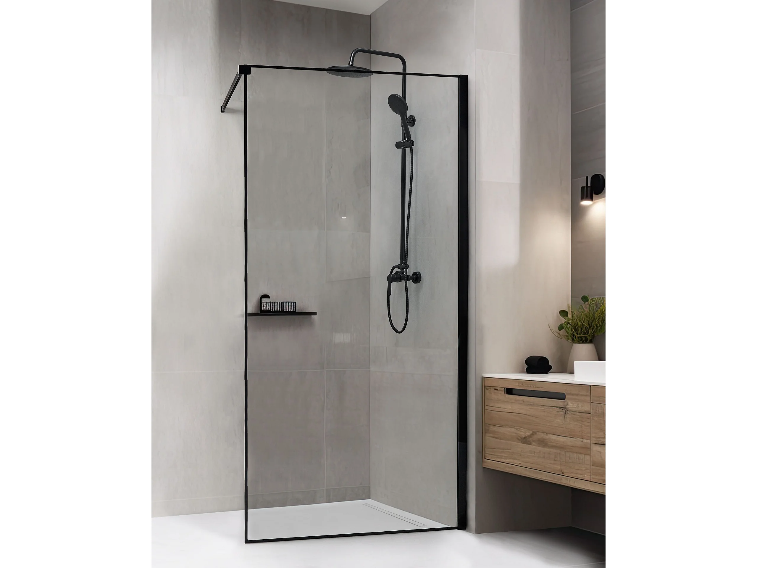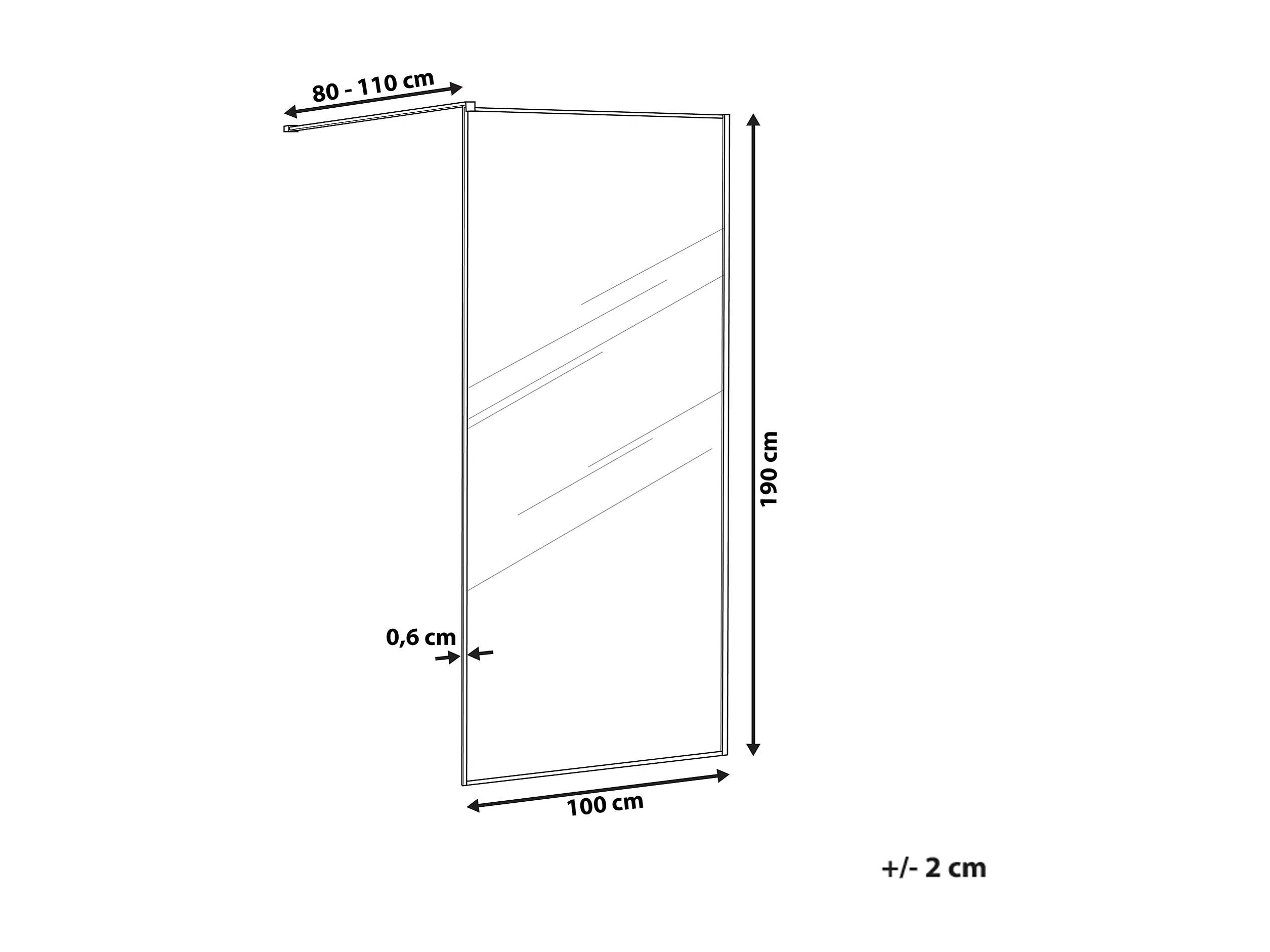 Duschwand ohne Türen aus Sicherheitsglas 100 x 190 cm schwarz Waspam