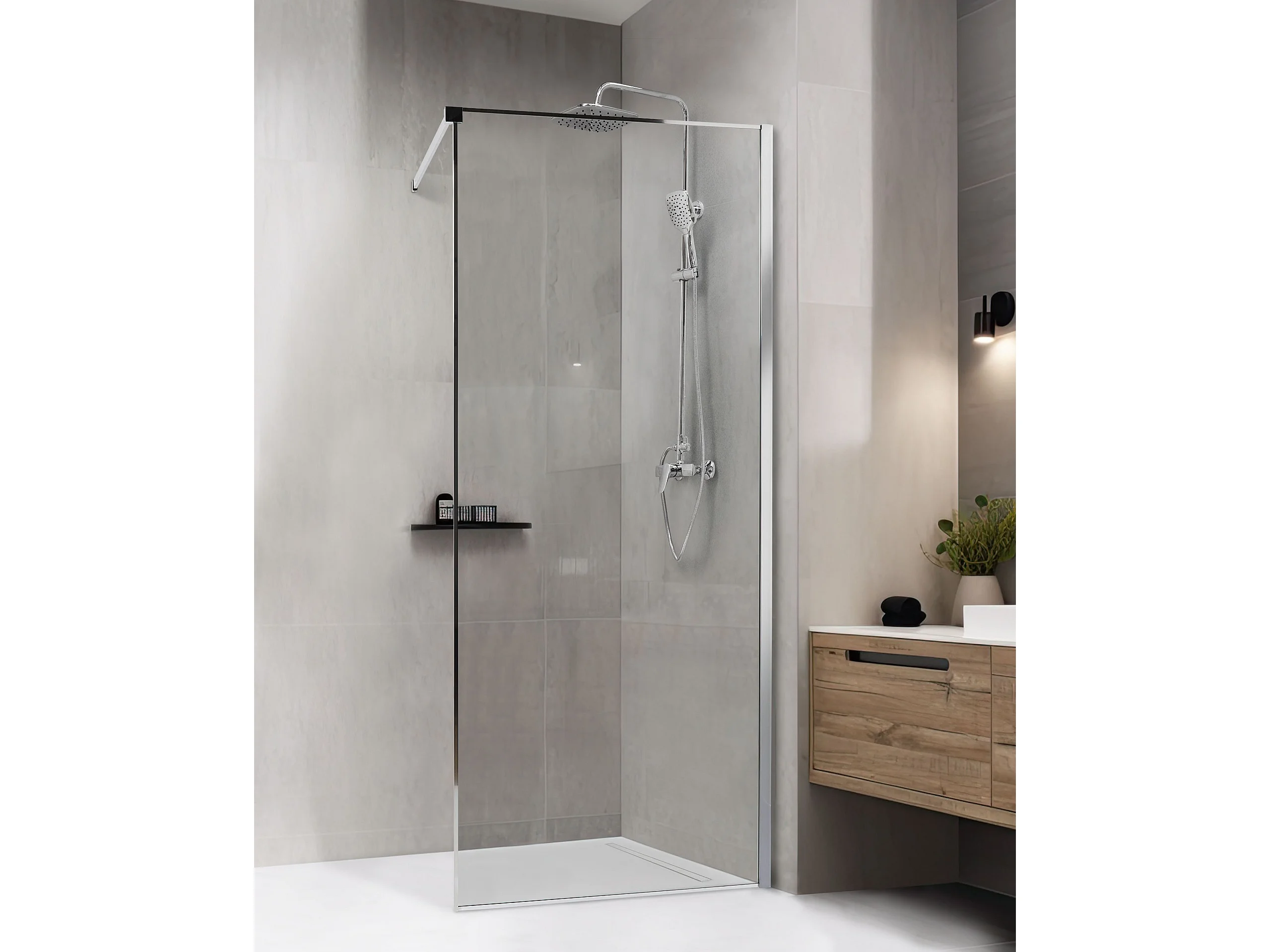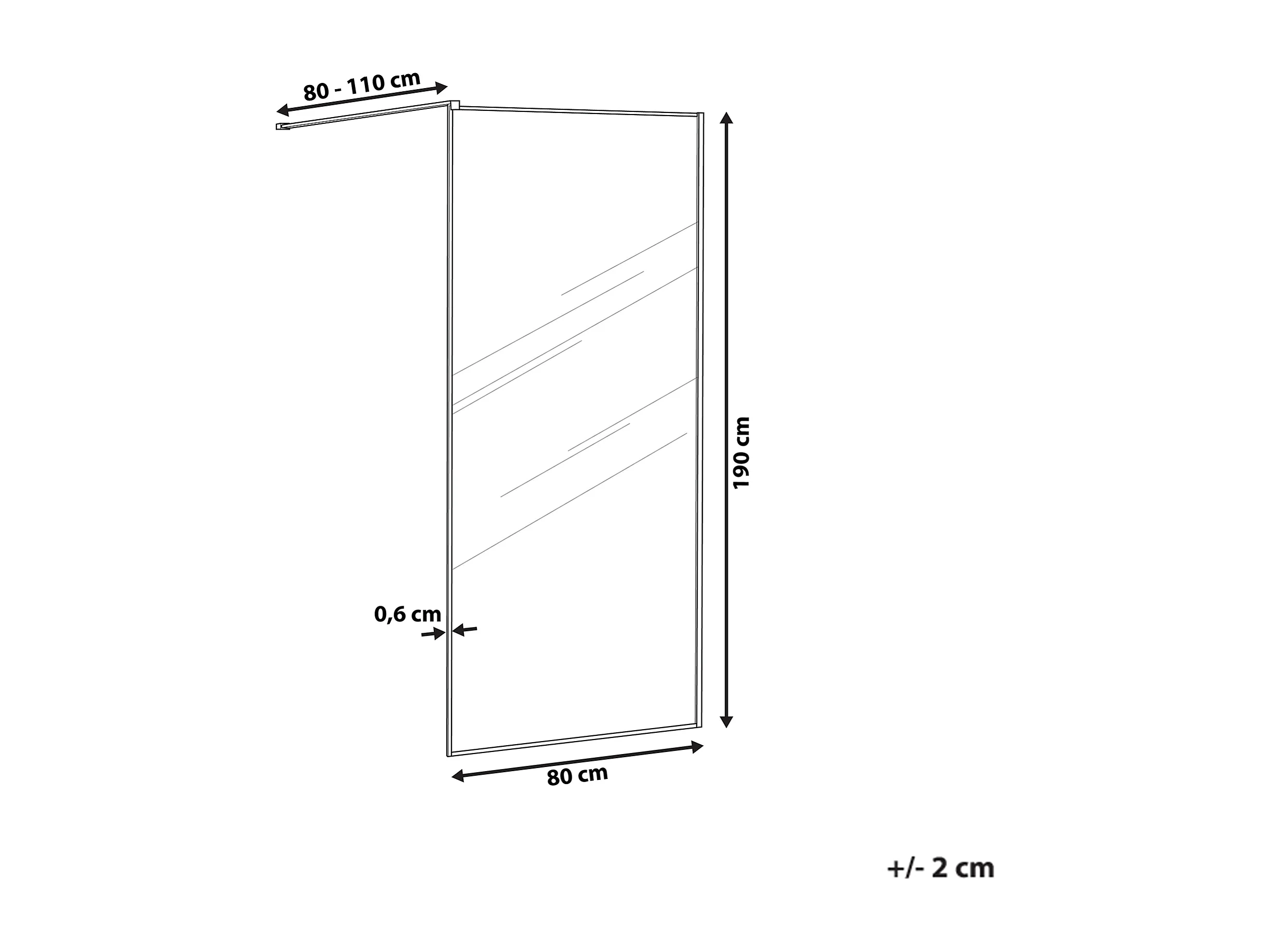 Duschwand ohne Türen aus Sicherheitsglas 80 x 190 cm silber Waspam