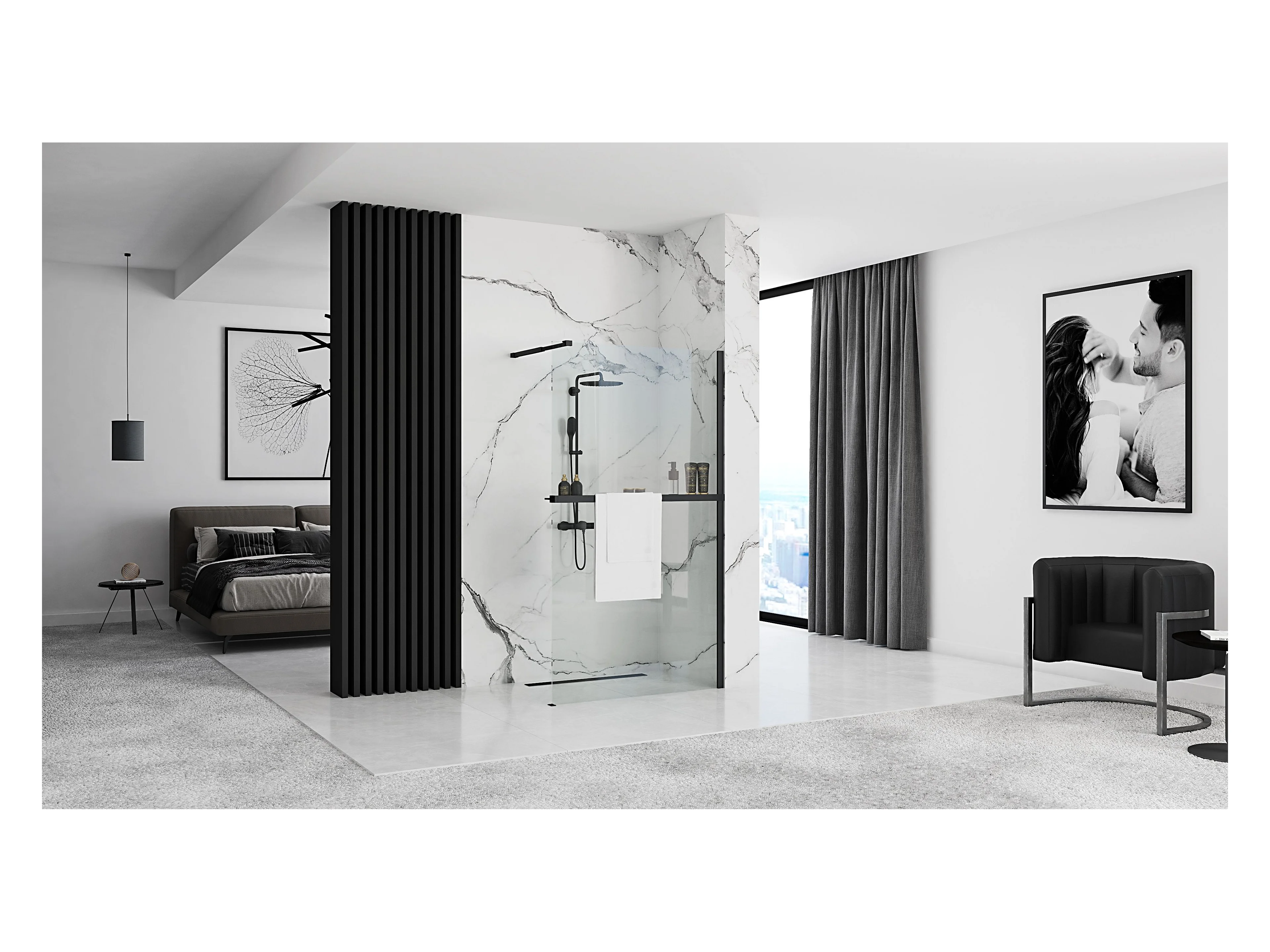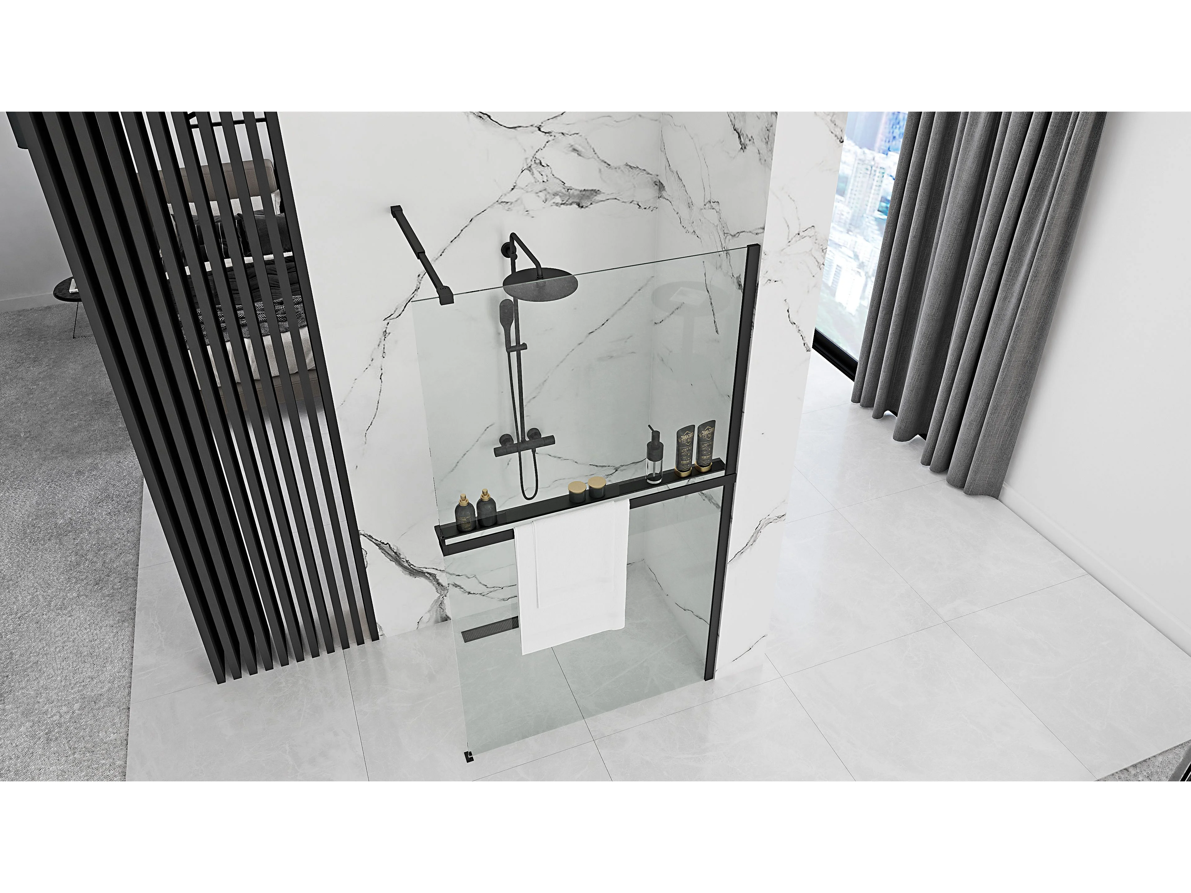 Duschwand Rea Aero 90 Black + Handtuchhalter Evo