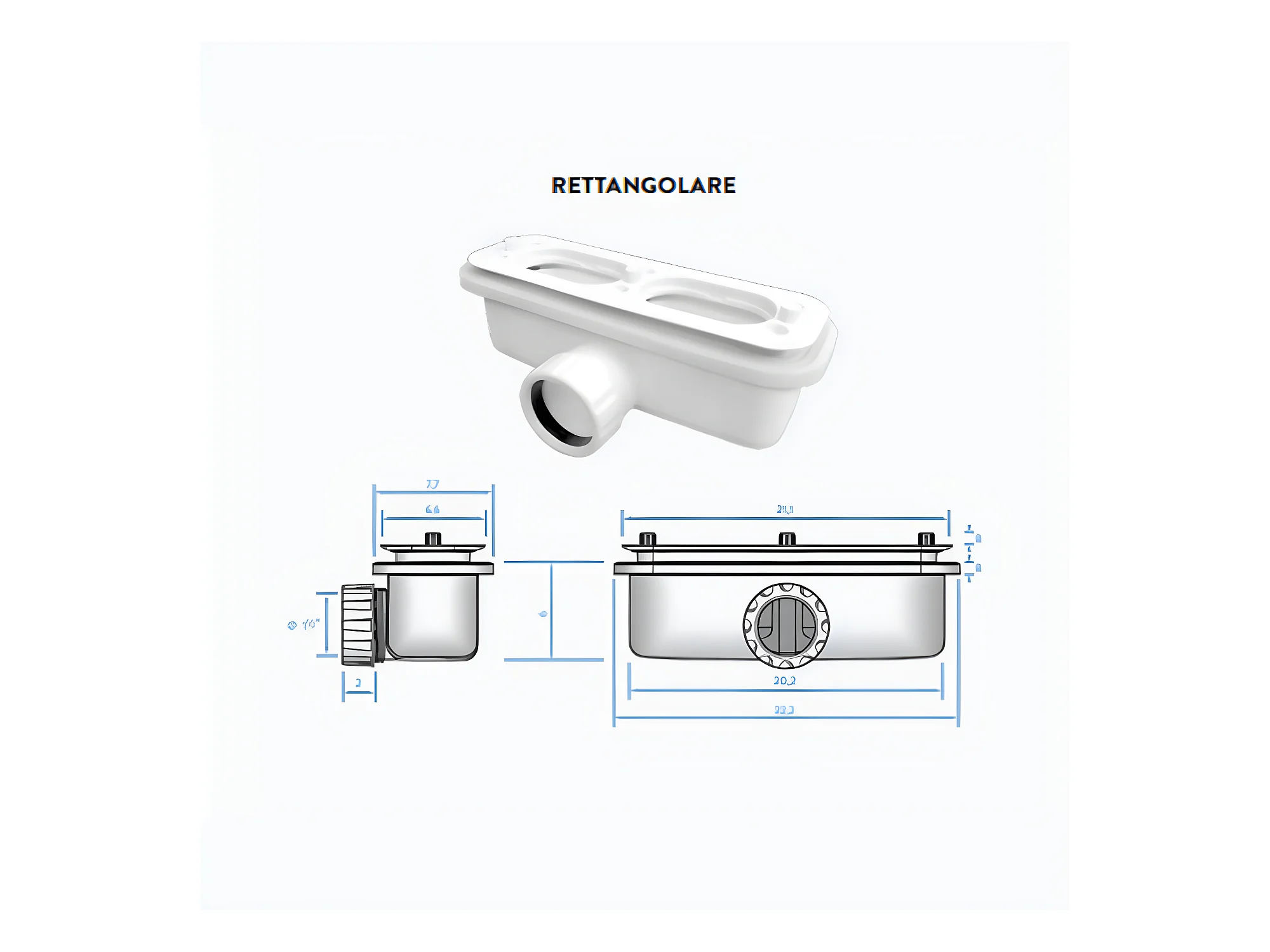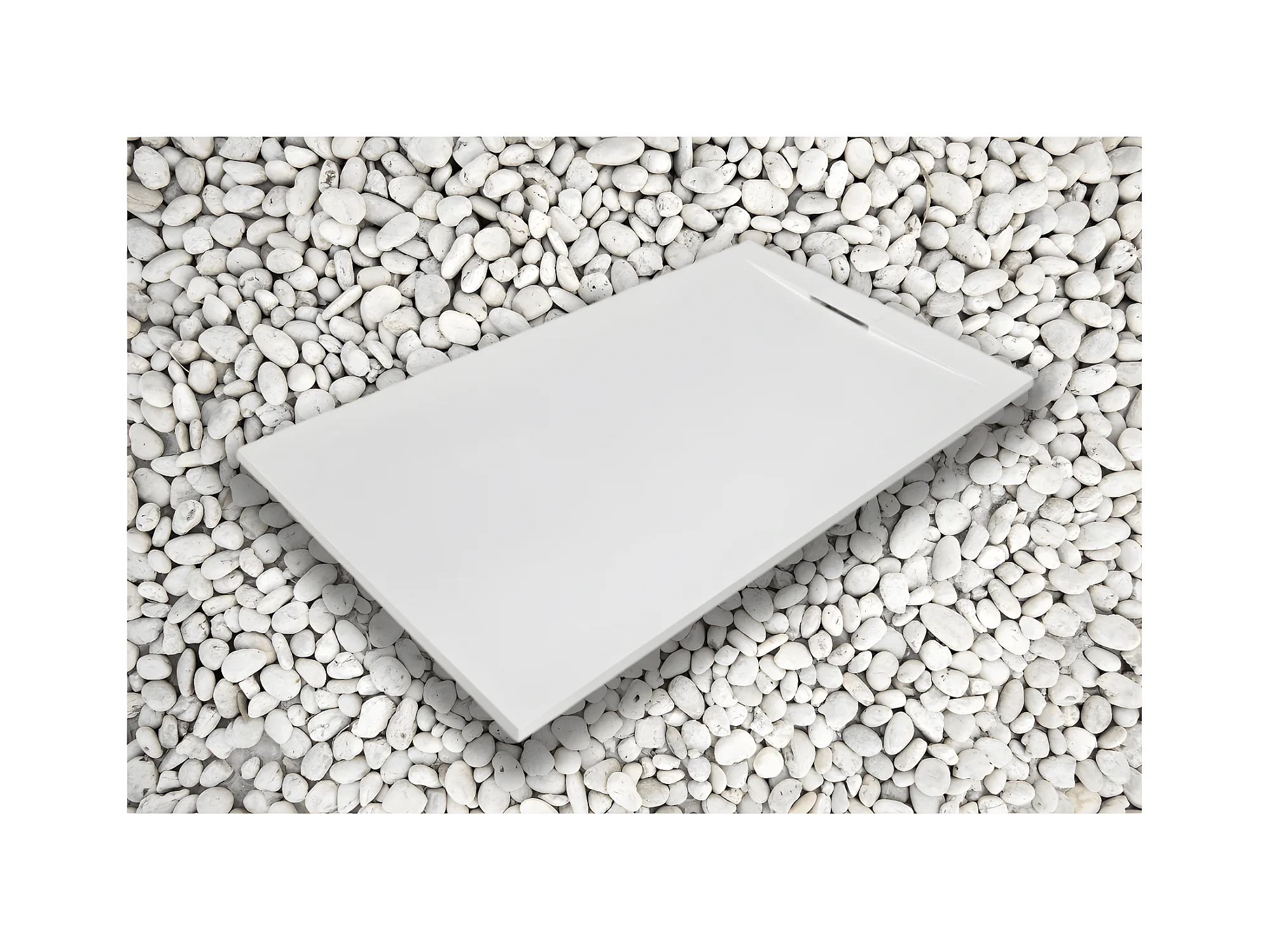 Duschwanne 115 x 70 cm weiß Vulcano Line PLUS aus Harz und Marmorpulver mit seitlichem Gitter aus MARMORHARZ