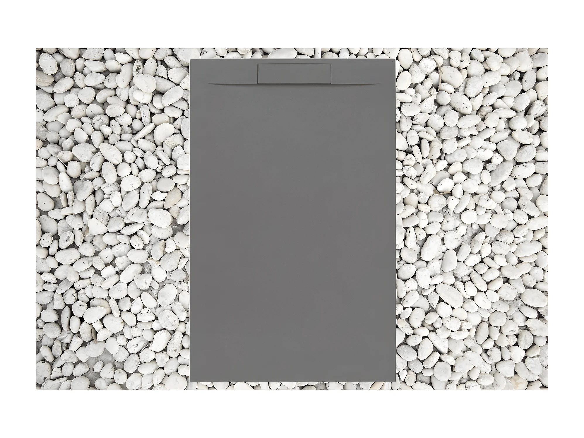 Duschwanne 140X100 cm GRAU RAL 7037 Vulcano Line PLUS aus Harz und Marmorpulver mit seitlichem Gitter aus MARMORHARZ
