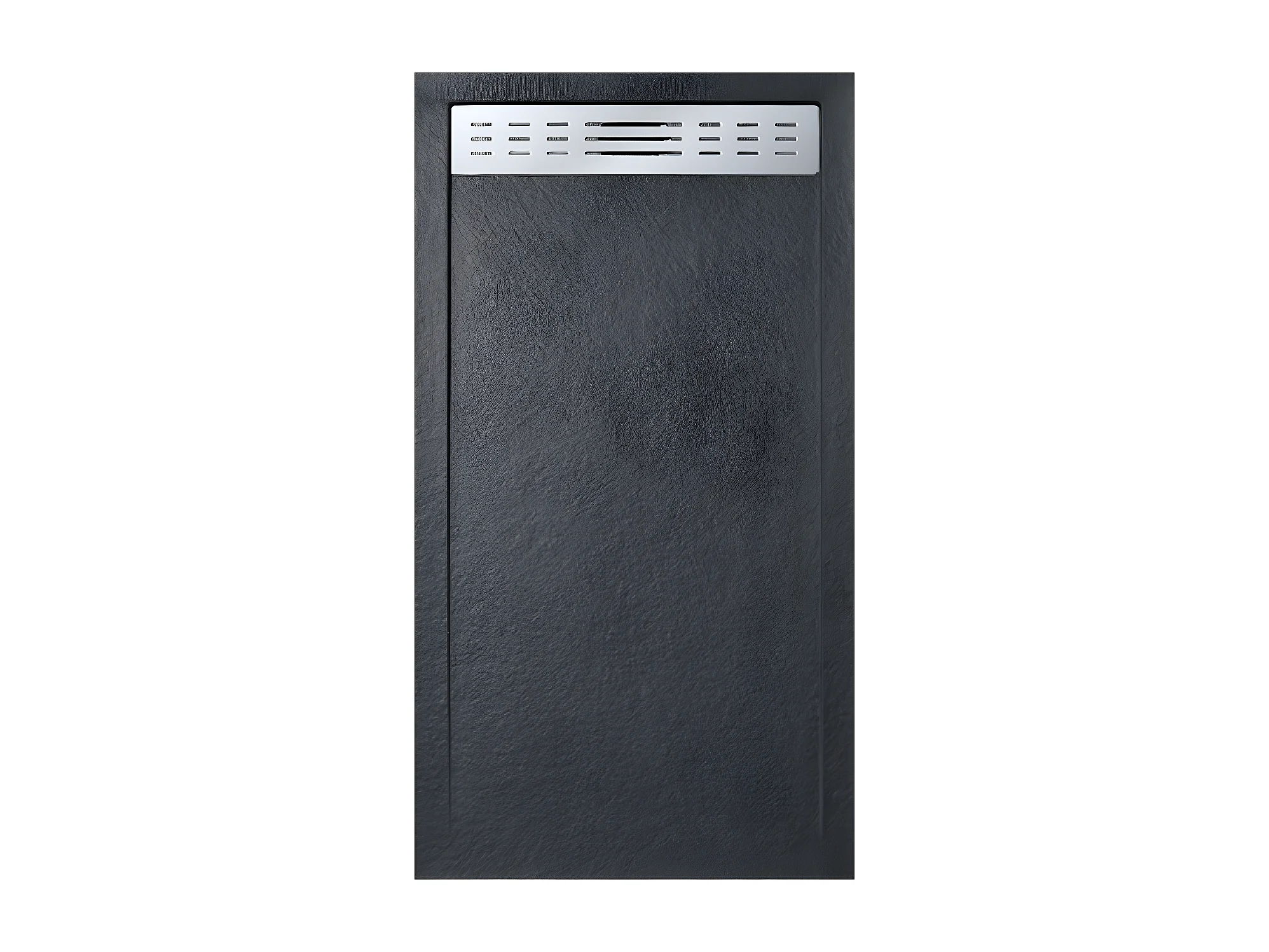 Duschwanne 80X155 cm mit Seitengitter Vulcano Line Extra Slim Schwarz aus Kunstharz und Marmorpulver mit Ablauf