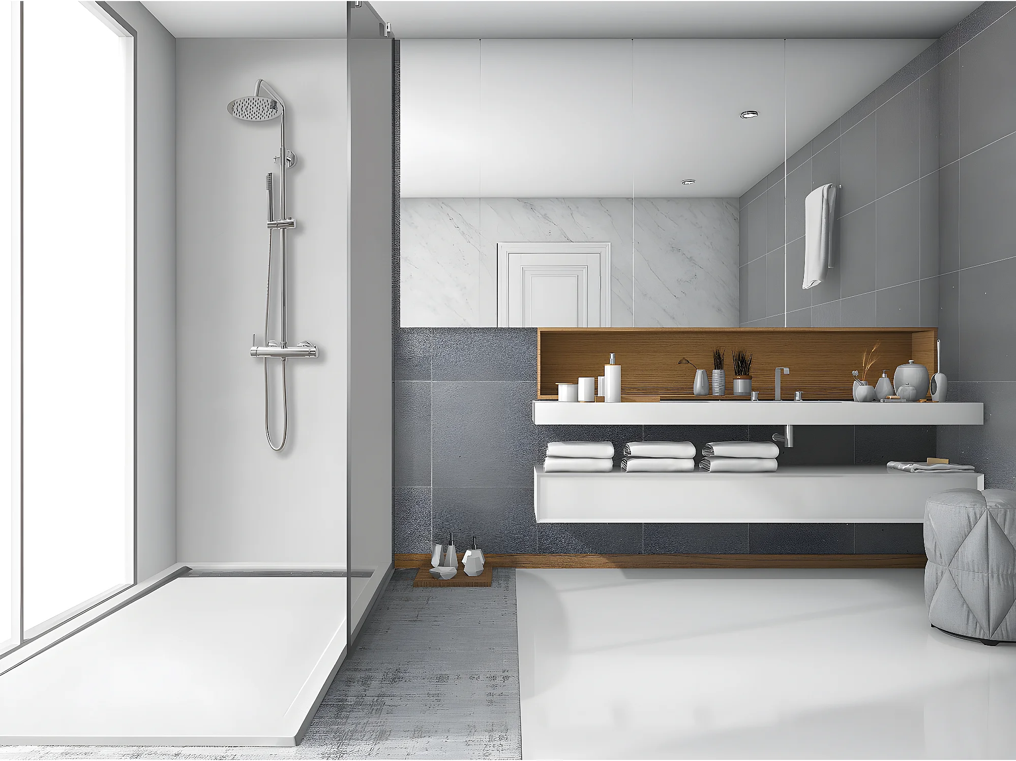Duschwanne 90 x 180 cm mit Seitengitter Vulcano Line Slim Grau RAL 7037 aus Kunstharz und Marmorpulver mit Ablauf
