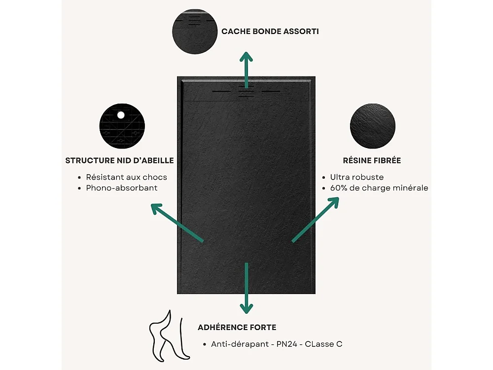 Duschwanne aus Kunstharz 120 x 90 Schwarzschiefer Essebagno