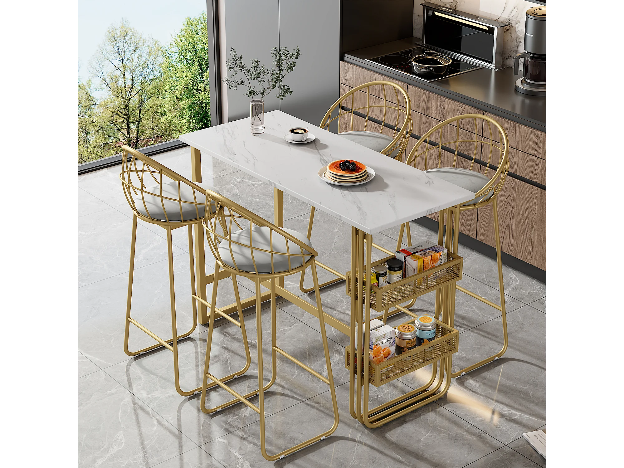 „Eat Standing“-Set: Bartisch und 2 Hocker – Metallstruktur – Gold