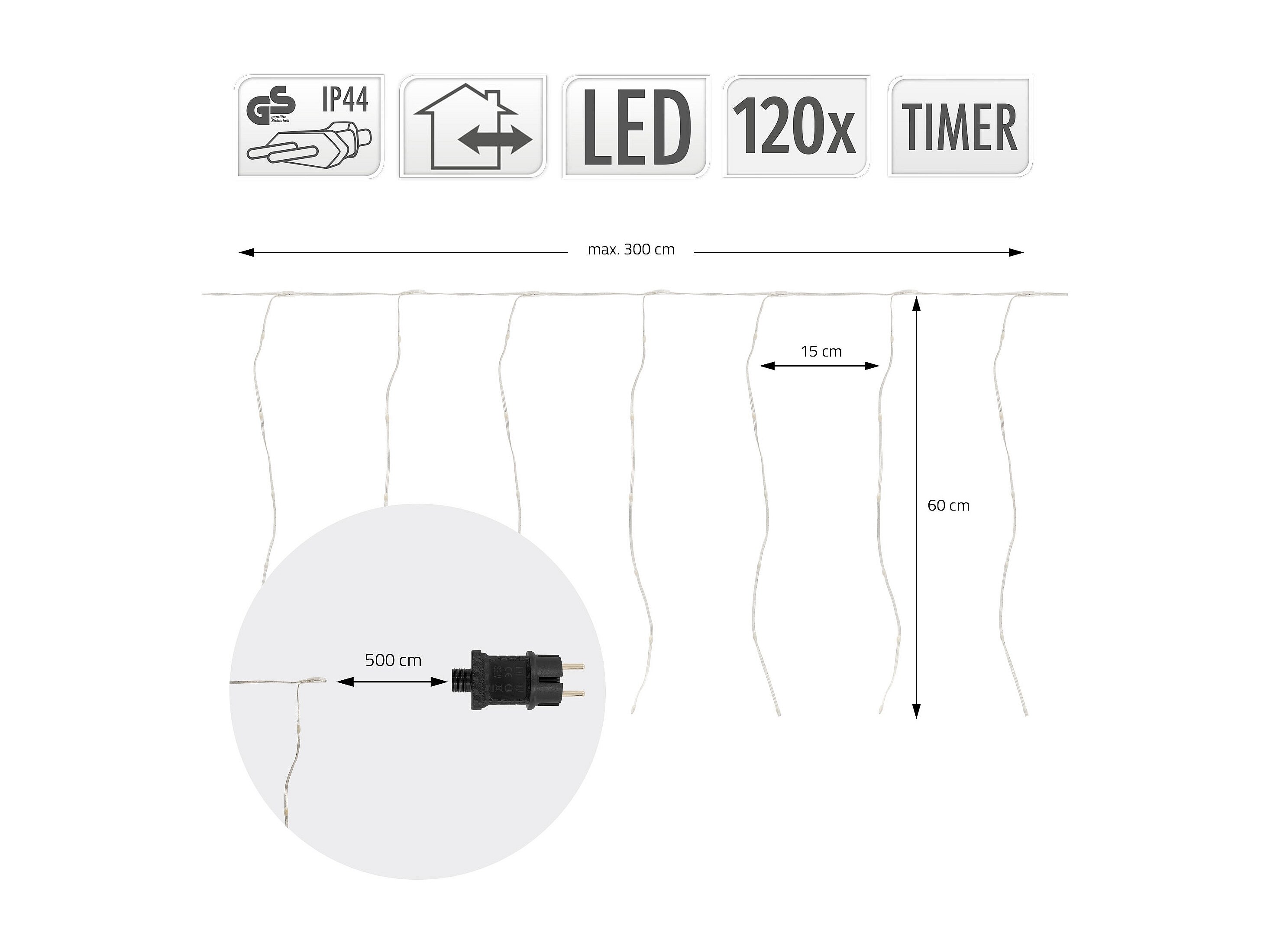 ECD Germany LED Lichtervorhang 300 cm 120 LEDs Warmweiß inkl. Timer 19 Leuchtmodi Weihnachtsdeko Vorhang für Innen/Außen Weihnachten LED Lichterkette