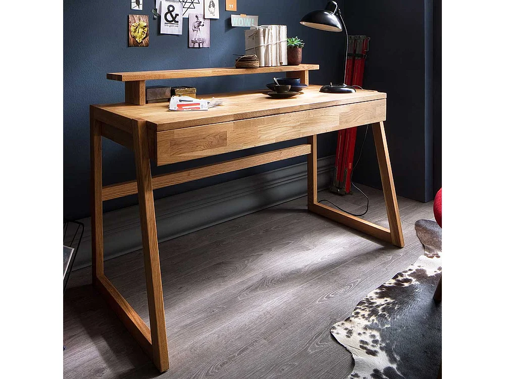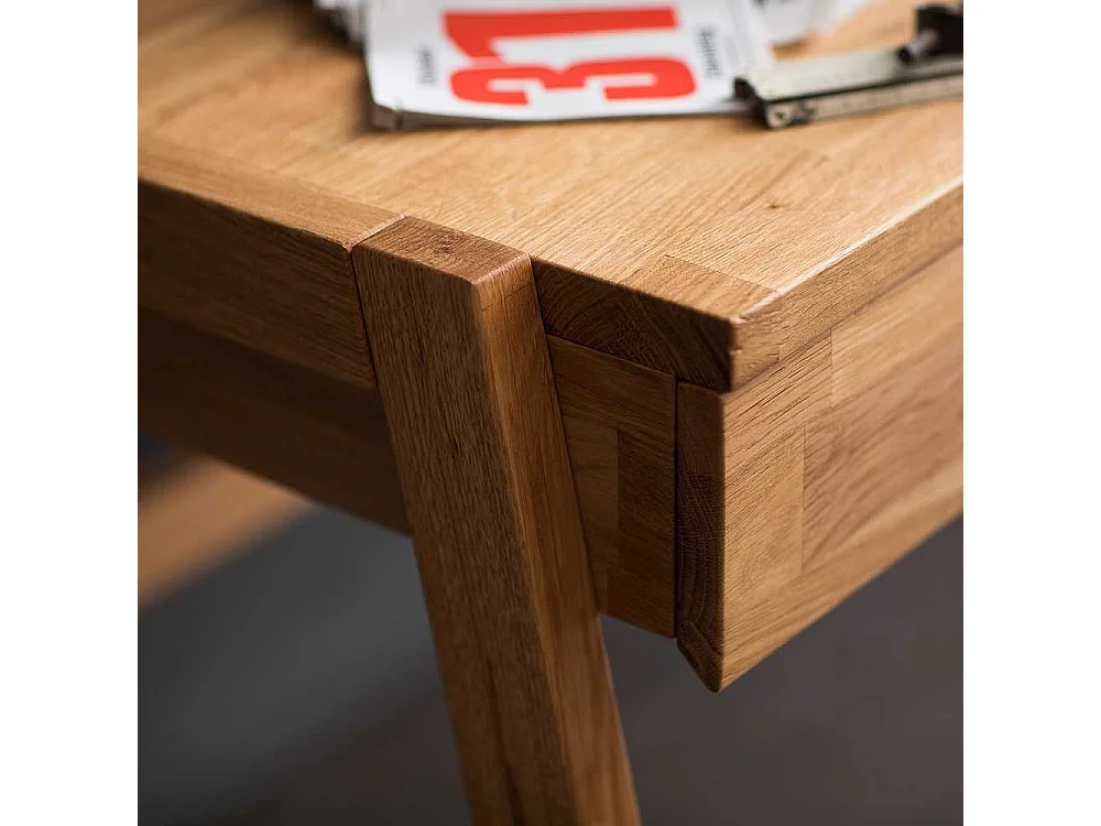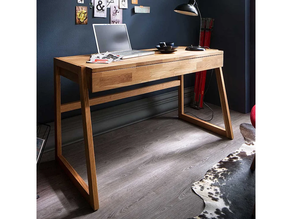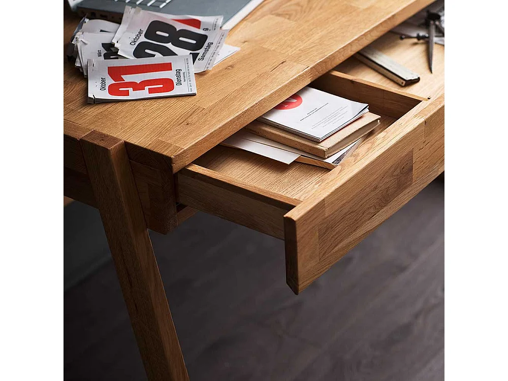 Echtholz Schreibtisch aus Wildeiche geölt einer Schublade
