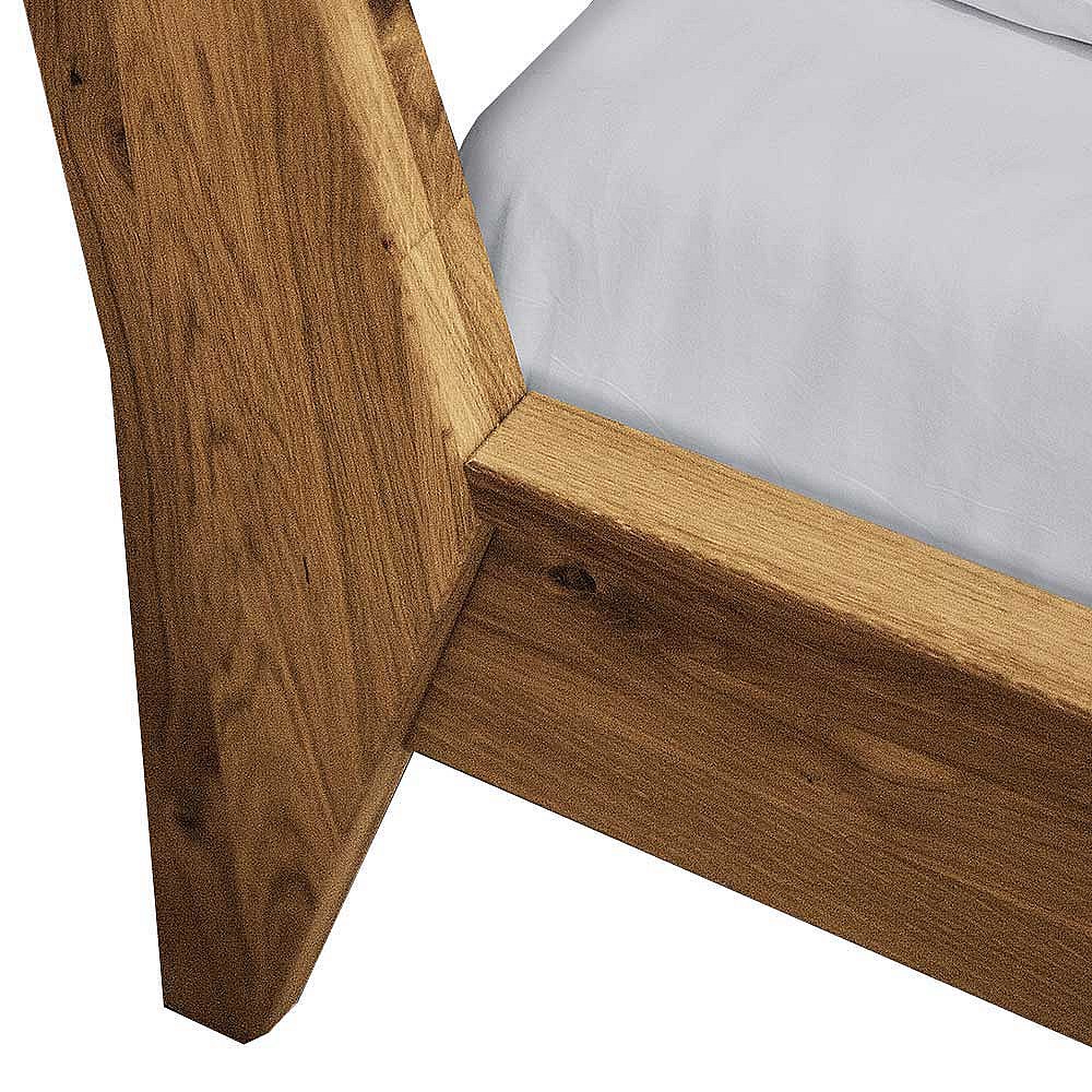 Echtholzbett aus Wildeiche Massivholz Polsterkopfteil in Dunkelbraun