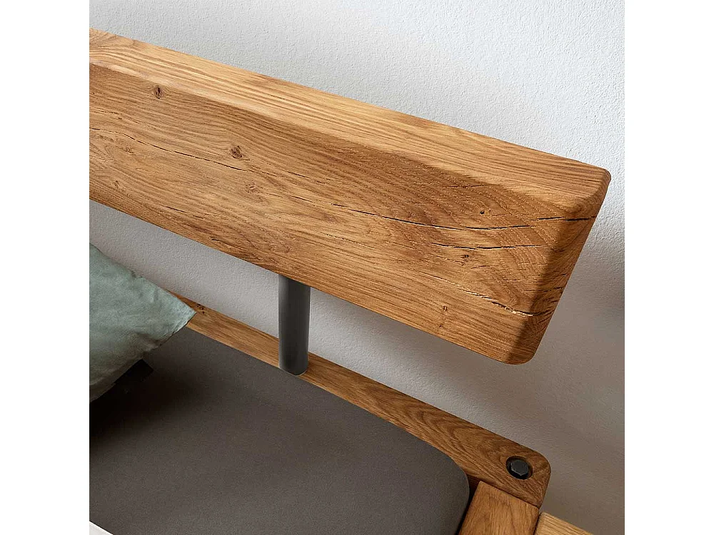Echtholzbett Doppelbett massiv in Wildeichefarben mit Bügelgestell