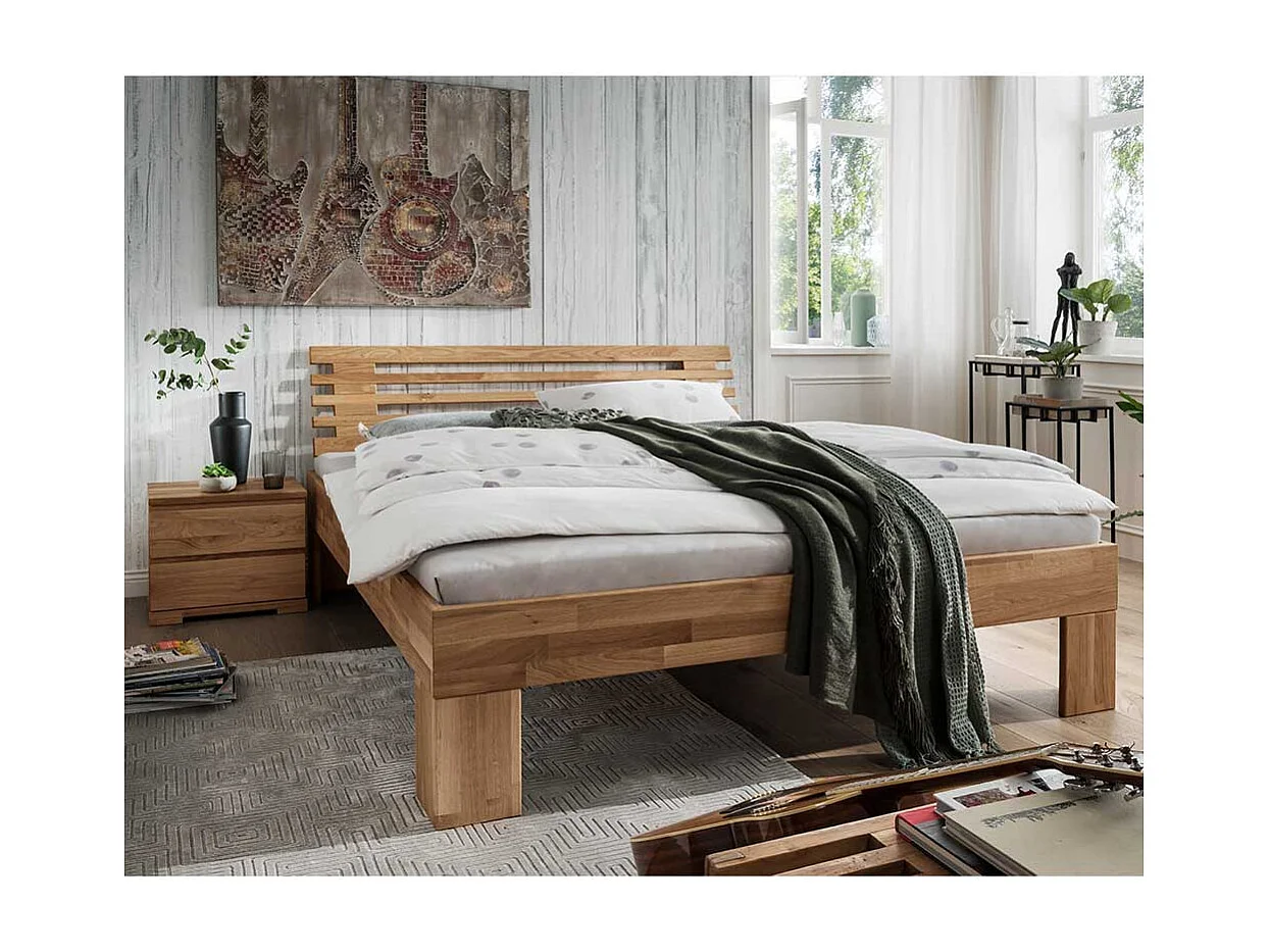 Echtholzbett mit Kommoden aus Wildeiche Massivholz Oberfläche geölt (dreiteilig)