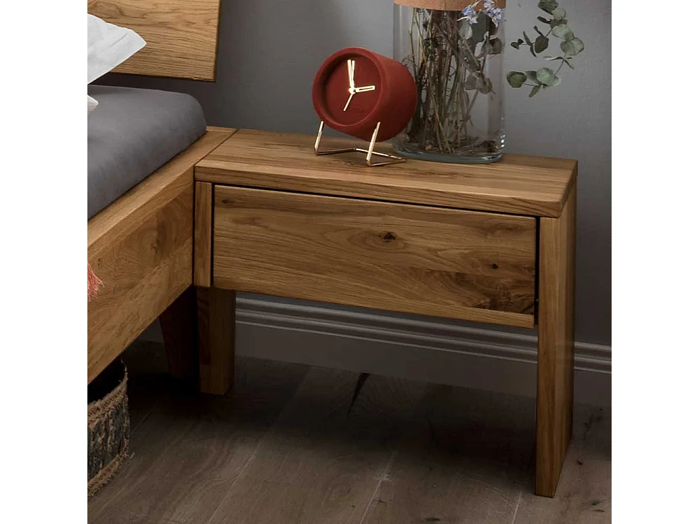 Echtholzbett Wildeiche inklusive zwei Nachtkommoden 27 cm Bodenfreiheit (dreiteilig)