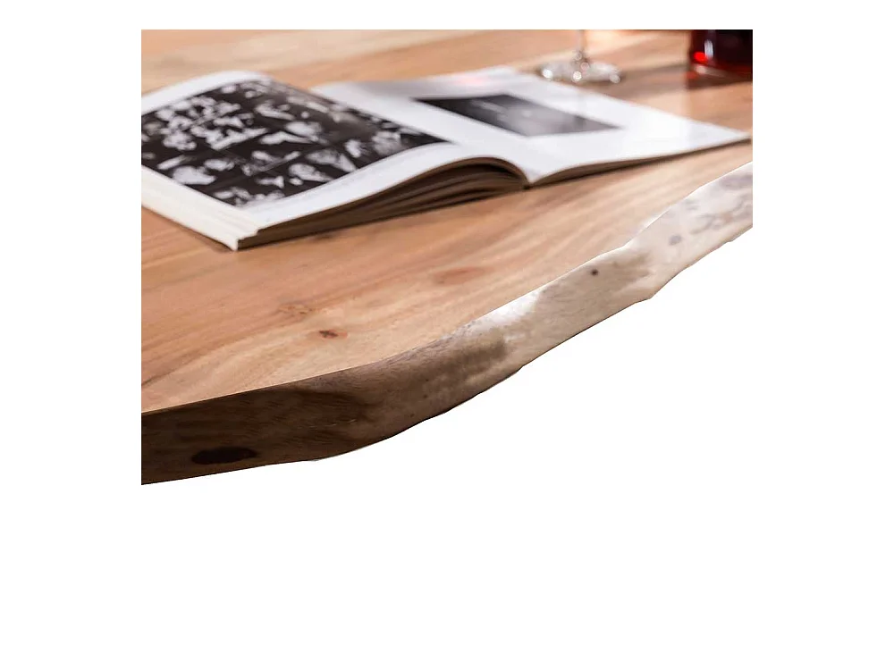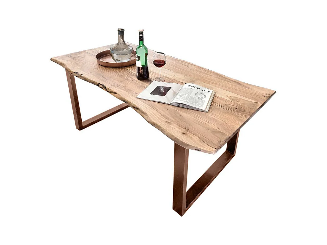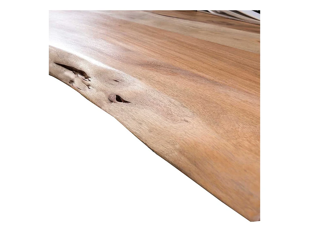 Echtholztisch aus Akazie Massivholz und Metall Bügelgestell
