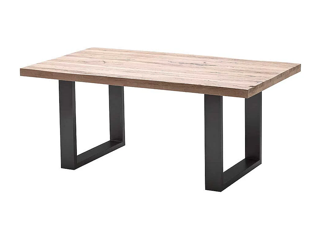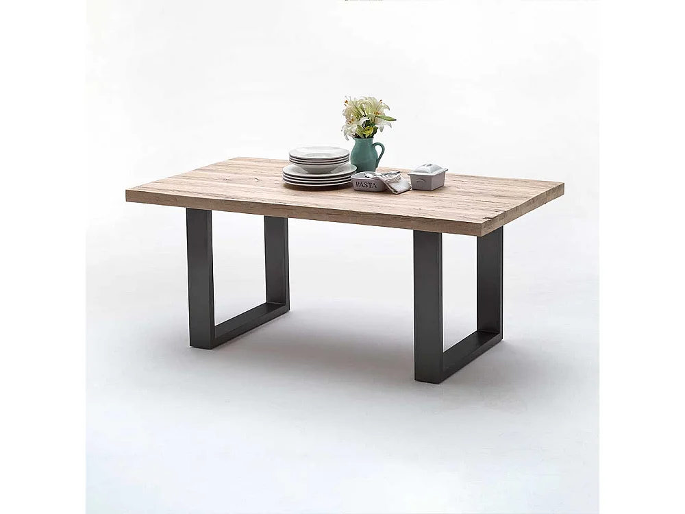 Echtholztisch aus Zerreiche massiv gekälkt Bügelgestell aus Stahl