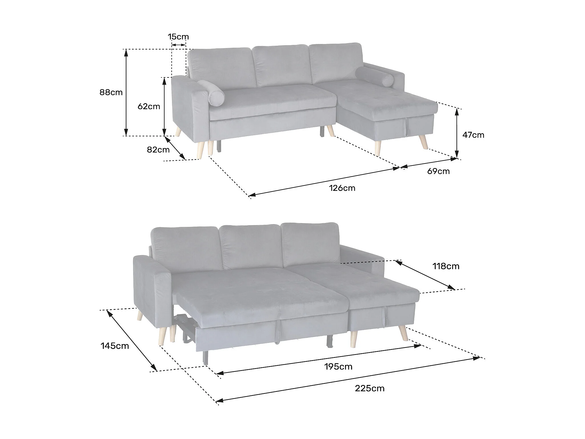 Eck-Couch-Sofa JAMES 3-Sitzer in grünem Velours