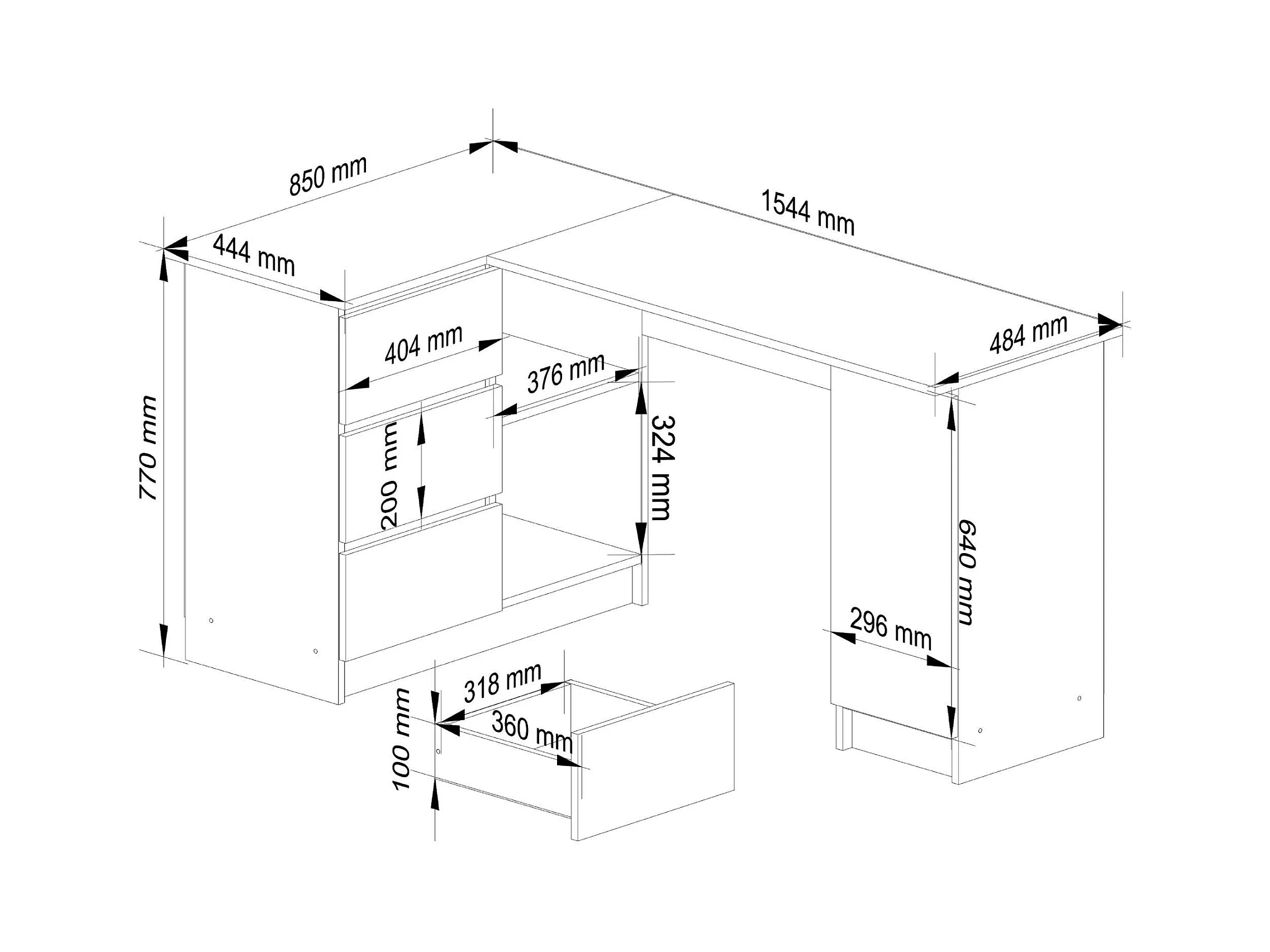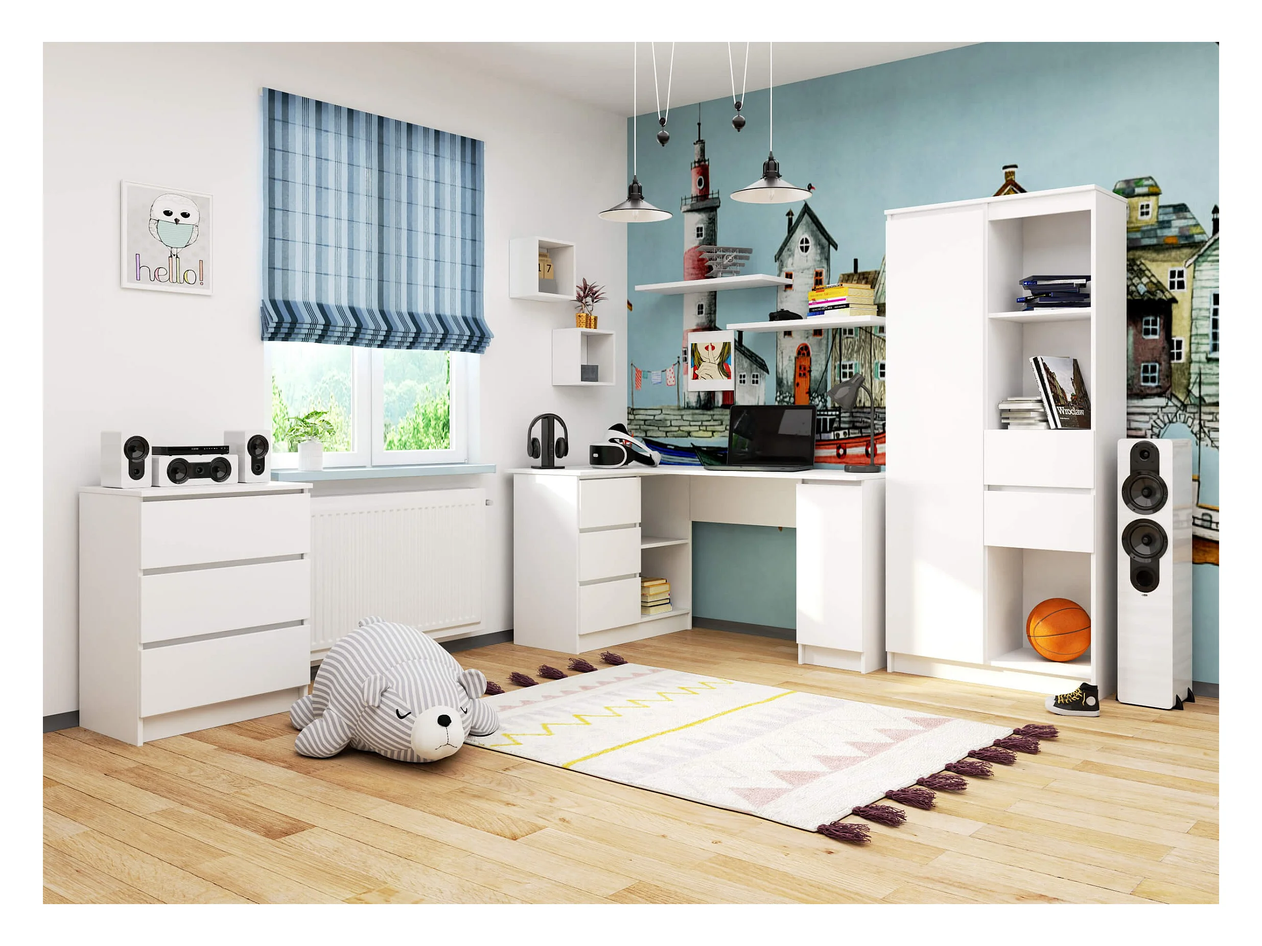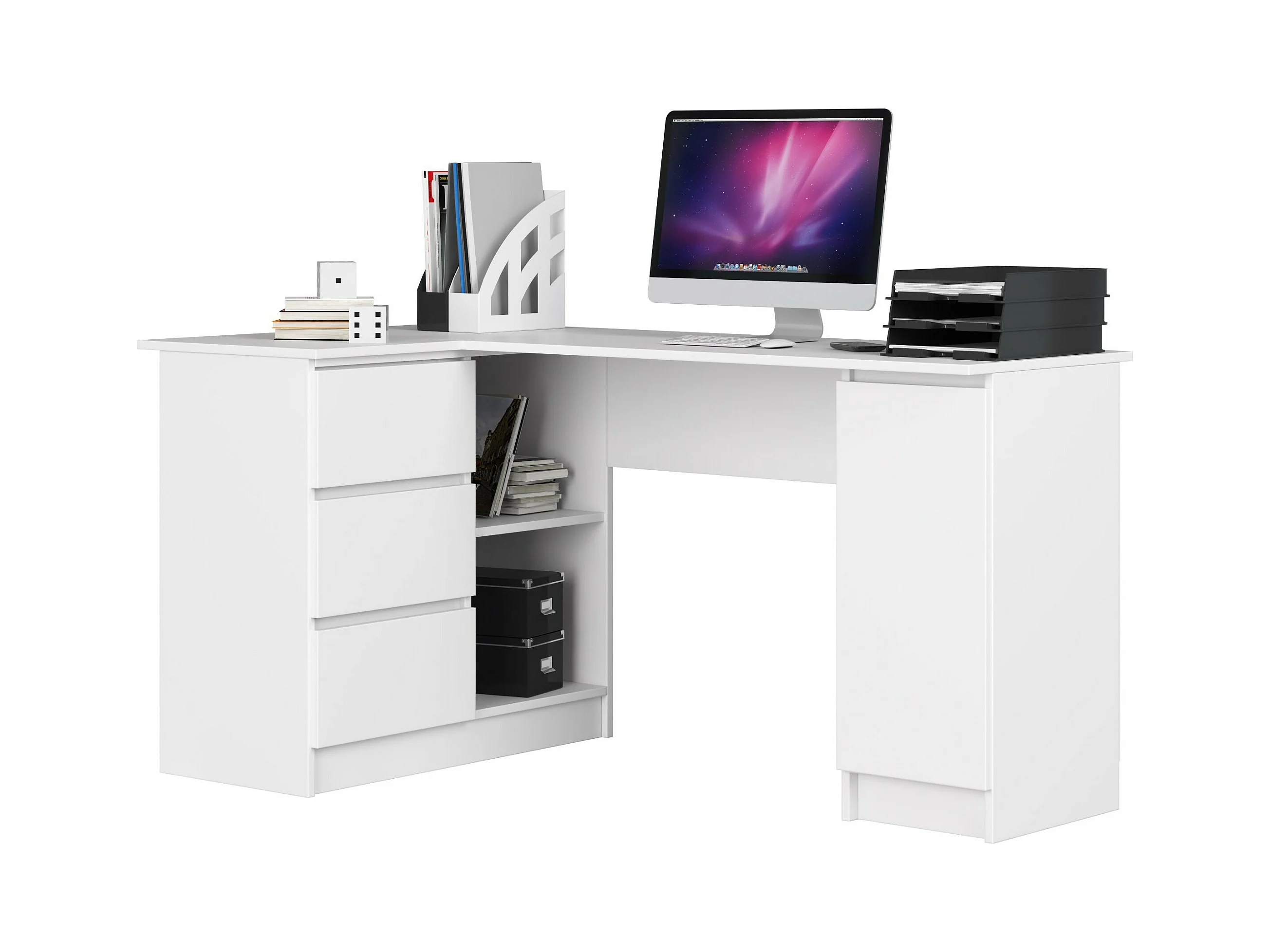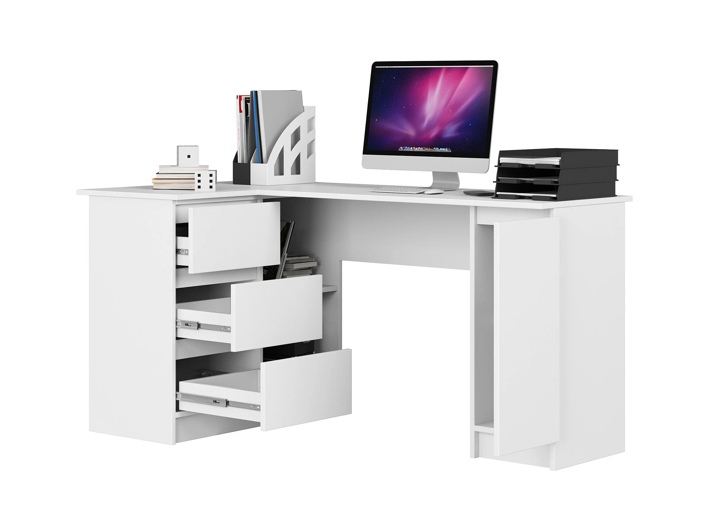 Eck-Schreibtisch AKORD B20 links in der Farbe Weiß mit 3 Schubladen Front Weiß und 4 Ablagen B155 x H77 x T85 cm