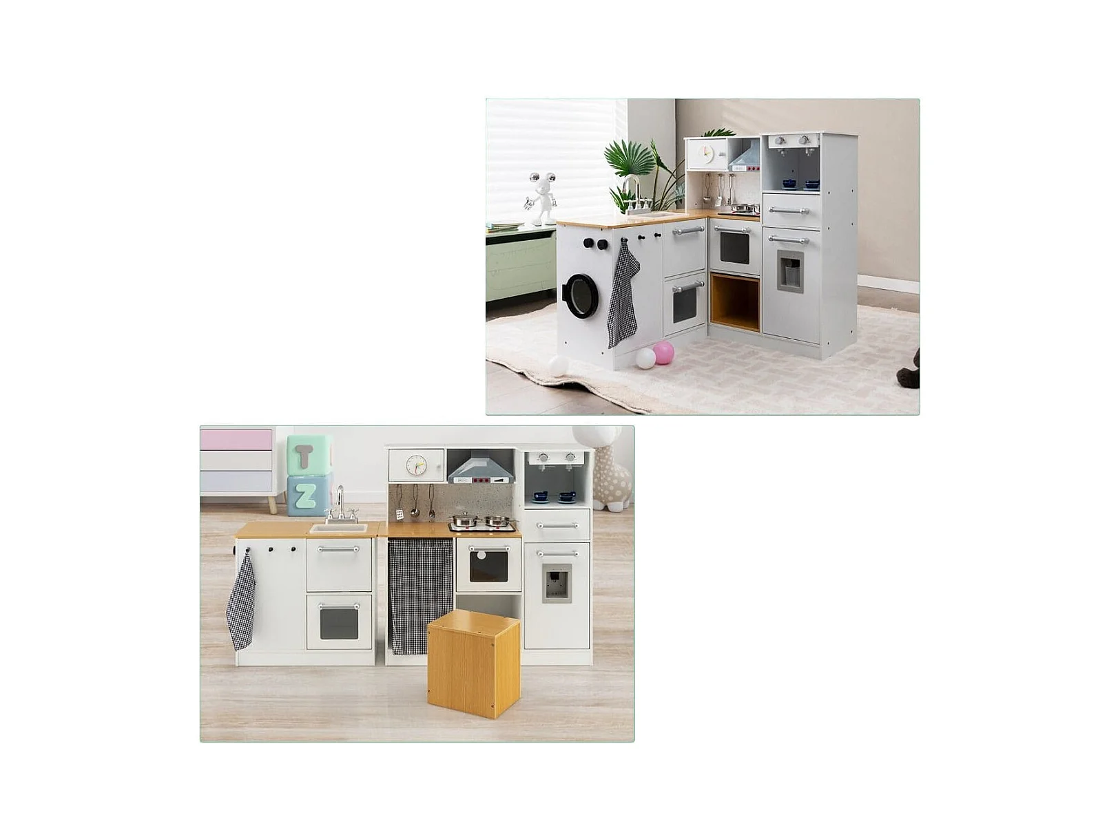 Kinder-Küchenset Spielküche mit Licht Hocker Kaffeemaschine Wasserspender Herd